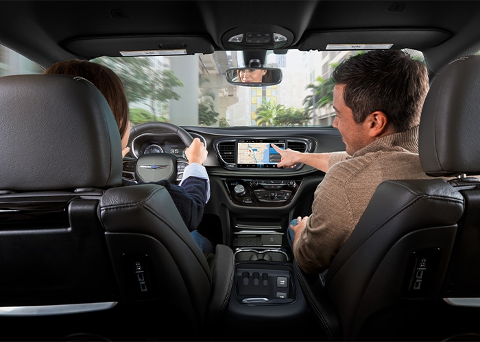 The Chrysler Pacifica embraces modern connectivity with the advanced Uconnect®5 infotainment system, displayed on a crisp 10.1-inch touchscreen. This intuitive interface is framed by climate-control vents on the dashboard, creating a seamless integration of technology and functionality. The system includes Amazon Alexa integration, allowing voice control of several features, plus wireless Apple CarPlay® and Android Auto™ connectivity for smartphone integration without cables.
