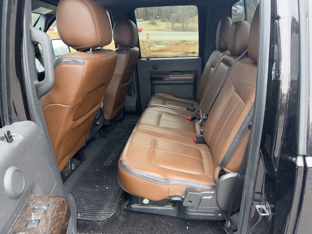 4WD, 10 Speakers, 18" Bright Machined Cast Alum. 6-Spoke Wheels, 20" Platinum Cast Aluminum Wheels, 4-Wheel Disc Brakes, ABS brakes, Adjustable pedals, Air Conditioning, Alloy wheels, AM/FM radio: SiriusXM, Auto-dimming Rear-View mirror, Automatic temperature control, Brake assist, Bumpers: chrome, CD player, Compass, Delay-off headlights, Driver door bin, Driver vanity mirror, Dual front impact airbags, Dual front side impact airbags, Electronic Stability Control, Engine Block Heater, Exterior Parking Camera Rear, Extra Heavy-Duty 200-Amp Alternator, Front anti-roll bar, Front Bucket Seats, Front Center Armrest, Front dual zone A/C, Front fog lights, Front reading lights, Fully automatic headlights, FX4 Off-Road Package, GVWR: 10,000 lb Payload Package, Heated door mirrors, Heated Rear Seats, Illuminated entry, Leather steering wheel, Low tire pressure warning, Memory Power Adjustable Pedals, Navigation System w/HD & Satellite Broadcast, Order Code 608A, Outside temperature display, Overhead airbag, Overhead console, Panic alarm, Passenger door bin, Passenger vanity mirror, Platinum Package, Power door mirrors, Power driver seat, Power Moonroof, Power passenger seat, Power steering, Power windows, PowerScope Trailer-Tow Mirrors, Premium audio system: Sony, Premium Leather Seating Surfaces 40/Console/40, Radio data system, Radio: Premium Sony Audio w/Single CD, Rear Parking Sensors, Rear reading lights, Rear seat center armrest, Rear step bumper, Rear window defroster, Remote keyless entry, Remote Start System, Security system, SiriusXM Satellite Radio, Speed control, Split folding rear seat, Steering wheel mounted audio controls, SYNC w/MyFord Touch & SYNC Services, Tachometer, Tailgate Step & Handle, Telescoping steering wheel, Tilt steering wheel, Traction control, Trip computer, Turn signal indicator mirrors, Unique Platinum Leather 40/Console/40 Seats, Universal Garage Door Opener, Upfitter Switches (4), Variably intermittent wipers, 4WD.