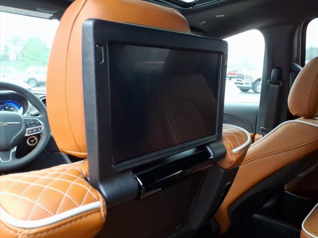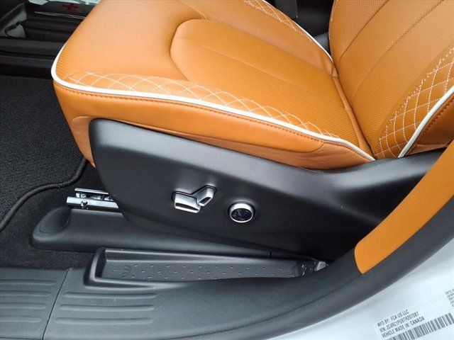 19 Speakers, 3.25 Axle Ratio, 3rd row seats: split-bench, 4-Wheel Disc Brakes, 7 and 4 Pin Trailer Tow Wiring Harness, A/V remote, ABS brakes, Air Conditioning, Alloy wheels, AM/FM radio: SiriusXM 360L, Apple CarPlay/Android Auto, Audio memory, Auto-dimming door mirrors, Auto-dimming Rear-View mirror, Automatic temperature control, Bodyside moldings, Brake assist, Bumpers: body-color, Compass, Delay-off headlights, Driver door bin, Driver vanity mirror, Dual front impact airbags, Dual front side impact airbags, Electronic Stability Control, Emergency communication system: Chrysler Connect, First Aid Kit, Four wheel independent suspension, Front anti-roll bar, Front Bucket Seats, Front Center Armrest, Front dual zone A/C, Front fog lights, Front reading lights, Fully automatic headlights, Garage door transmitter, harman/kardon® Speakers, Headphones, Heated door mirrors, Heated front seats, Heated rear seats, Heated steering wheel, Heavy-Duty Radiator, Hitch with 2" Receiver, Illuminated entry, Knee airbag, Low tire pressure warning, Lumbar Pillow, Memory seat, MOPAR Chrome Wheel Locks (dealer Installed), MOPAR Paint Protection Film, MOPAR Roadside Emergency Kit, MyFlexCare Service Plan, Navigation System, Occupant sensing airbag, Outside temperature display, Overhead airbag, Overhead console, Panic alarm, ParkView Rear Back-Up Camera, Passenger door bin, Passenger vanity mirror, Power door mirrors, Power driver seat, Power Liftgate, Power moonroof, Power passenger seat, Power steering, Power windows, Premium Leather Trimmed Bucket Seats, Quick Order Package 27S, Radio data system, Radio: Uconnect 5 Nav with 10.1" Display, Rain sensing wipers, Rear air conditioning, Rear reading lights, Rear window defroster, Rear window wiper, Reclining 3rd row seat, Reflecting Triangle, Remote keyless entry, Roof rack, Security system, Sepia Seat Color, Speed control, Split folding rear seat, Spoiler, Steering wheel mounted audio controls, Tachometer, Telescoping steering wheel, Tilt steering wheel, Tool Kit, Touring Suspension, Traction control, Trailer Sway Damping, Trailer Tow Group, Trip computer, Turn signal indicator mirrors, Variably intermittent wipers, Ventilated front seats, Voltmeter, Wheels: 20" x 7.5" Paint/Polish Aluminum Design 2.