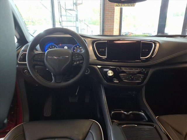 115V Auxiliary Power Outlet, 13 Speakers, 18" x 7.5" Painted Aluminum Wheels, 19 Harman/Kardon Speakers with Subwoofer, 2nd and 3rd Row Window Shades, 3-Channel Video Remote Control, 3.25 Axle Ratio, 360 Surround View Camera System, 3rd row seats: split-bench, 4-Wheel Disc Brakes, 7 and 4 Pin Trailer Tow Wiring Harness, 760 Watt Amplifier, ABS brakes, Air Conditioning, Alloy wheels, AM/FM radio: SiriusXM 360L, Amazon Fire TV Built-in, Anodized Ink Badging, Apple CarPlay/Android Auto, Audio memory, Auto-dimming Rear-View mirror, Automatic temperature control, Black Day Light Opening Moldings, Black Seats, Black Stow 'N Place Roof Rack, Blu-Ray/DVD Player/USB Port, Brake assist, Bumpers: body-color, Compass, Delay-off headlights, Driver door bin, Driver vanity mirror, Driver's Seat Mounted Armrest, Dual front impact airbags, Dual front side impact airbags, Electronic Stability Control, Emergency communication system: Chrysler Connect, FamCAM Interior Camera, Four wheel independent suspension, Front anti-roll bar, Front Bucket Seats, Front dual zone A/C, Front fog lights, Front reading lights, Fully automatic headlights, Garage door transmitter, Gloss Black Exterior Mirrors, Hands Free Sliding Doors, Heated door mirrors, Heated front seats, Heated rear seats, Heated steering wheel, Heavy-Duty Radiator, High Definition Multimedia Interface, Hitch with 2" Receiver, Illuminated entry, Integrated Active Noise Cancellation, Knee airbag, Low tire pressure warning, Memory seat, Nappa Leather Bucket Seats, Nappa Leather Bucket Seats with S Logo, Navigation System, Occupant sensing airbag, Outside temperature display, Overhead airbag, Overhead console, Panic alarm, ParkSense Front/Rear Park Assist with Stop, ParkView Rear Back-Up Camera, Passenger door bin, Passenger seat mounted armrest, Passenger vanity mirror, Power door mirrors, Power driver seat, Power Liftgate, Power moonroof, Power passenger seat, Power steering, Power windows, Premium Fascia Upper/Lower Grille with Black Surround, Premium Rear Fascia Black, Quick Order Package 27P, Radio data system, Radio: Uconnect 5 Nav with 10.1" Display, Rain sensing wipers, Rear air conditioning, Rear reading lights, Rear window defroster, Rear window wiper, Reclining 3rd row seat, Remote keyless entry, S Appearance Package, S Badge, Safety Sphere, Seatback Video Screens, Security system, Speed control, Split folding rear seat, Spoiler, Steering wheel mounted audio controls, Stow N Vac Integrated Vacuum, Tachometer, Telescoping steering wheel, Tilt steering wheel, Touring Suspension, Traction control, Trailer Sway Damping, Trailer Tow Grou Price includes: $3500 - 2026 National Retail