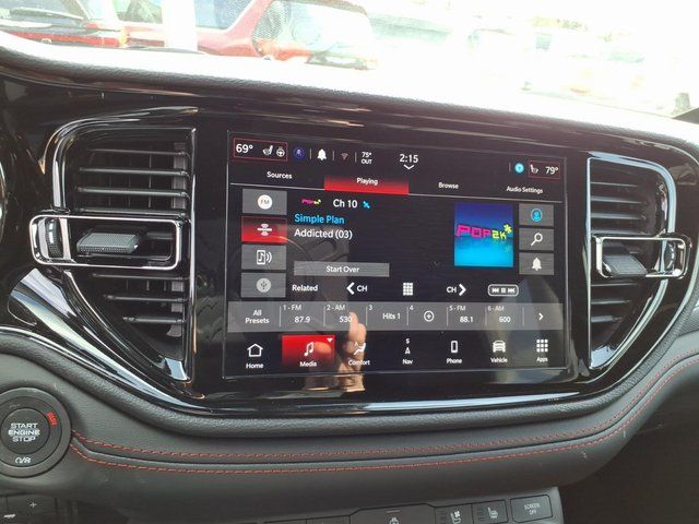 AWD, 115V Auxiliary Power Outlet, 160 Mph Primary Speedometer, 2nd Row Fold/Tumble Captain Chairs, 2nd Row Mini Console with Cupholders, 2nd Row Seat Mounted Inboard Armrests, 3.09 Rear Axle Ratio, 3rd Row Floor Mat and Mini Console, 3rd row seats: split-bench, 4-Wheel Disc Brakes, 6-Passenger Seating, 7 and 4 Pin Wiring Harness, 9 Speakers, ABS brakes, Active Noise Control System, Adaptive Cruise Control with Stop, Adaptive Damping, Air Conditioning, Alloy wheels, AM/FM radio: SiriusXM w/360L, Apple CarPlay/Android Auto, Auto High Beam Headlamp Control, Auto-Dimming Exterior Driver Mirror, Auto-dimming Rear-View mirror, Auto-leveling suspension, Automatic Headlamp Leveling System, Automatic temperature control, Black Brake Calipers, Black Roof Rails, Blind Spot with Trailer Detection, Body Color Upper and Lower Rear Fascia, Brake assist, Brembo Brakes, Bumpers: body-color, Cargo Net, Class IV Receiver Hitch, Cloth Bucket Seats with Shift Insert, Compass, Delay-off headlights, Drive Modes - Sport/Track/Tow/Snow, Driver door bin, Driver vanity mirror, Dual front impact airbags, Dual front side impact airbags, Dual Remote USB Port - Charge Only, Electronic Limited Slip Differential Rear Axle, Electronic Stability Control, Emergency communication system: Dodge Connect, Exterior Mirrors with Heating Element, Exterior Mirrors with Memory, Exterior Mirrors with Supplemental Signals, Floor Console with Leather Armrest, Four wheel independent suspension, Front anti-roll bar, Front Bucket Seats, Front Center Armrest w/Storage, Front dual zone A/C, Front License Plate Bracket, Front reading lights, Full Speed Forward Collision Warning Plus, Fully automatic headlights, Garage door transmitter, Gloss Black Exterior Mirrors, Heated door mirrors, Heated front seats, Heated Second Row Seats, Heated steering wheel, High Performance Exhaust, High Performance Suspension, Illuminated entry, Integrated Roof Rail Crossbars, Knee airbag, Leather steering wheel, Leather Trimmed Bucket Seats, Leather Wrapped Door Panels, LED Auxiliary Low Beam and Turn Signal, Low tire pressure warning, MOPAR All Weather Package, MOPAR Front and Rear Door Entry Guards, MOPAR Slush Mats, Navigation System, Occupant sensing airbag, Outside temperature display, Overhead airbag, Overhead console, Panic alarm, ParkView Rear Back-Up Camera, Passenger door bin, Passenger vanity mirror, Performance Tuned Steering, Power 6x9 Multi-Function Foldaway Mirrors, Power 8-Way Driver Memory 8-Way Passenger Seats, Power door mirrors, Power driver seat, Power Driver/Passenger 4-Way Lumbar Adjust, Power Liftgate, Power steering, Power Sunroof, Power Tilt an