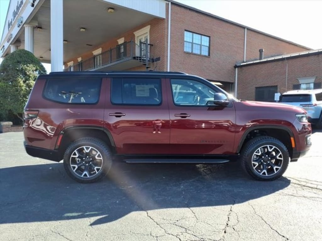 Velvet Red Pearlcoat 2025 Jeep Wagoneer Series II 4WD 8-Speed Automatic 3.0L I6 10 Speakers, 118 MPH Maximum Speed Calibration, 2 Speed On Demand Transfer Case, 3 Panel Sunroof, 3rd row seats: bench, 4-Wheel Disc Brakes, 60/40 Power Recline 3rd Row Seat, ABS brakes, Adjustable Roof Rail Crossbars, Air Conditioning, All-Season Floor Mats, Alloy wheels, AM/FM radio: SiriusXM with 360L, Amazon Fire TV Built-In, Anti-whiplash front head restraints, Apple CarPlay/Android Auto, Audio memory, Auto Adjust In Reverse Exterior Mirrors, Auto High Beam Headlamp Control, Auto Power Folding Exterior Mirrors, Auto Power-Folding Mirrors, Auto-dimming door mirrors, Auto-Dimming Exterior Driver Mirror, Auto-dimming Rear-View mirror, Auto-leveling suspension, Automatic temperature control, Black Exterior Accents, Black Roof, Brake assist, Bumpers: body-color, Cargo Tray, Compass, Delay-off headlights, Driver door bin, Driver vanity mirror, Driver's Seat Mounted Armrest, Dual front impact airbags, Dual front side impact airbags, Electronic Rear Limited Slip Differential, Electronic Stability Control, Emergency communication system: Jeep Connect, Exterior Mirrors Approach Lamps, Exterior Mirrors w/Memory, Exterior Mirrors w/Supplemental Signals, Four wheel independent suspension, Front anti-roll bar, Front Bucket Seats, Front Center Armrest w/Storage, Front dual zone A/C, Front fog lights, Front reading lights, Fuel Tank Skid Plate Shield, Fully automatic headlights, Garage door transmitter, Genuine wood console insert, Genuine wood dashboard insert, Genuine wood door panel insert, Heated door mirrors, Heated Exterior Mirrors, Heated front seats, Heated rear seats, Heated steering wheel, Heavy-Duty Engine Cooling, Illuminated entry, Knee airbag, Leather Trimmed Bucket Seats, Low tire pressure warning, Memory seat, Navigation System, Normal Duty Suspension, Occupant sensing airbag, Outside temperature display, Overhead airbag, Overhead console, Overland Appearance Package, Overland Exterior Accents, P&P Park & Unpark Assist w/Stop System, Panic alarm, ParkView Rear Back-Up Camera, Passenger door bin, Passenger seat mounted armrest, Passenger vanity mirror, Power adjustable front head restraints, Power door mirrors, Power driver seat, Power Liftgate, Power passenger seat, Power steering, Power windows, Quadra-Lift Air Suspension, Quick Order Package 25P Overland, Radio data system, Radio: Uconnect 5 Nav w/10.1" Display, Rain sensing wipers, Rear air conditioning, Rear anti-roll bar, Rear dual zone A/C, Rear reading lights, Rear seat center armrest, Rear Seat Video Group 1, Rear window defroster, Rear window wiper, Reclining 3rd row seat, Remote keyless entry, Removable Rear Tow Hook, Seatback Video Screens, Security system, Selec-Speed Control, Semi Active Damping, Side Distance Warning, Speed control, Speed-sensing steering, Speed-Sensitive Wipers, Split folding rear seat, Steering wheel memory, Steering wheel mounted audio controls, Surround View Camera System, Tachometer, Telescoping steering wheel, Tilt steering wheel, Traction control, Trailer Brake Control, Trailer Hitch Zoom, Trip computer, Turn signal indicator mirrors, Vapor Tow Hooks, Variably intermittent wipers, Ventilated front seats, Video USB Port, Voltmeter, Wheels: 20" x 9.0" Machine Face Painted Aluminum, Wheels: 20" x 9.0" Premium 2 Aluminum.