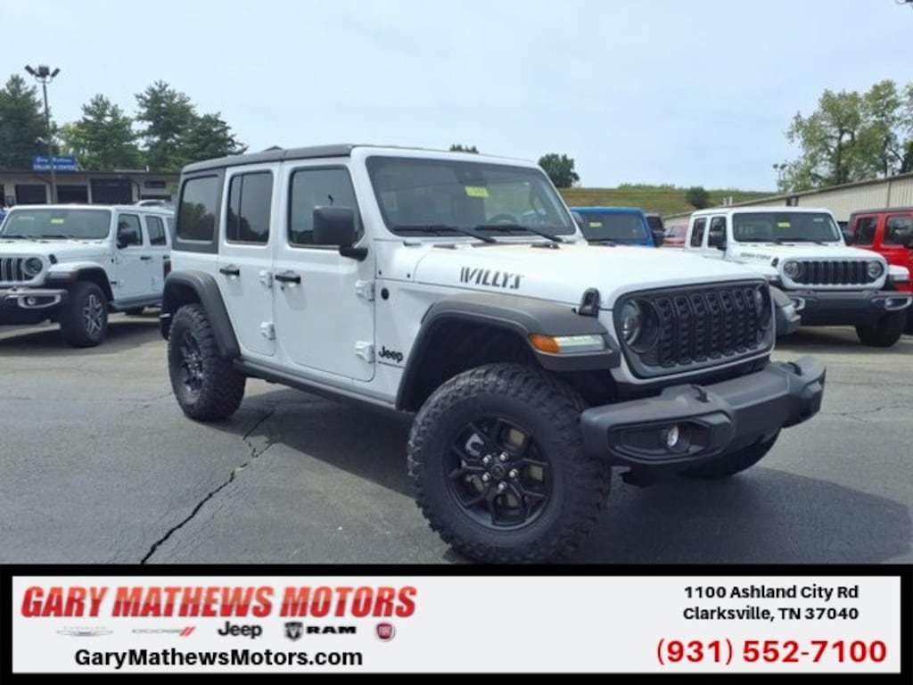 Bright White Clearcoat 2025 Jeep Wrangler Willys 4WD 8-Speed Automatic 3.6L V6 24V VVT Bluetooth, New Tires, New Brakes, USB Port, Heated Seats, Satellite Radio/ XM, Push Button Start, Radar Cruise Control/ Adaptive Cruise Control, 4WD, UConnect, Apple Car Play, 2-Door Passive Entry, Front Door Locks, 4-Wheel Disc Brakes, 4-Wheel Drive Swing Gate Decal, 4.10 Rear Axle Ratio, 7 & 4 Pin Wiring Harness, 8 Speakers, 97 MPH Vehicle Max Speed Calibration, ABS brakes, Advanced Brake Assist, Air Conditioning, Air Conditioning w/Auto Temperature Control, Air Filtering, AM/FM radio: SiriusXM, Apple CarPlay/Android Auto, Automatic Headlamps, Aux Battery, Auxiliary Switches, Black 3-Piece Hard Top, Black Grille, Brake assist, Class II Receiver Hitch, Cloth Low-Back Bucket Seats, Cluster 7.0" TFT Color Display, Compass, Convenience Group, Conventional Differential Front Axle, Corning Gorilla Glass, Dana M210 Wide HD Tube Front Axle, Dana M220 Wide Rear Axle, Daytime Running Lamps LED Accents, Deep Tint Sunscreen Windows, Delay-off headlights, Driver door bin, Driver vanity mirror, Dual front impact airbags, Dual front side impact airbags, E-Locker Rear Axle, Electronic Stability Control, Emergency/Assistance Call, Enhanced Adaptive Cruise Control, Freedom Panel Storage Bag, Front anti-roll bar, Front Bucket Seats, Front Center Armrest w/Storage, Front fog lights, Front LED Fog Lamps, Front reading lights, Full Speed Forward Collision Warning Plus, Heated Front Seats, Heated Steering Wheel, Illuminated entry, Injection Molded Black Rear Bumper, Integrated roll-over protection, Jeep Trail Rated Kit, LED Premium Reflector Headlamps, Low tire pressure warning, Mold In Color Bumper w/Gloss Black, Molded in Color Rubicon Highline Flare, MOPAR All-Weather Floor Mats, Non-Lock Fuel Cap w/o Discriminator, Normal Duty Suspension, Occupant sensing airbag, Off-Road Plus Mode, Outside temperature display, Overhead airbag, Panic alarm, ParkView Rear Back-Up Camera, Passenger door bin, Passenger vanity mirror, Power Heated Mirrors, Power steering, Power windows, Premium Wrapped Steering Wheel, Quick Order Package 24W Willys, Radio data system, Radio: Uconnect 5 w/12.3" Display, Rear anti-roll bar, Rear reading lights, Rear Window Defroster, Rear Window Wiper/Washer, Remote keyless entry, Remote Start System, Security Alarm, Speed control, Split folding rear seat, Steering wheel mounted audio controls, Stop-Start Dual Battery System, Sun Visors w/Illuminated Vanity Mirrors, Tachometer, Telescoping steering wheel, Tilt steering wheel, Traction control, Trip computer, Universal Garage Door Opener, Variably intermittent wipers, Wheels: 17" x 7.5" Black Steel Styled, Wheels: 17" x 7.5" Painted Black, Willy's Suspension, Willys Hood Decal, 110 MPH Vehicle Max Speed Calibration, 2-Door Passive Entry, Front Door Locks, 4-Wheel Disc Brakes, 4-Wheel Drive Swing Gate Decal, 4.10 Rear Axle Ratio, 7 & 4 Pin Wiring Harness, 8 Speakers, 97 MPH Vehicle Max Speed Calibration, ABS brakes, Advanced Brake Assist, Air Conditioning, Air Conditioning w/Auto Temperature Control, Air Filtering, AM/FM radio: SiriusXM, Apple CarPlay/Android Auto, Automatic Headlamps, Aux Battery, Auxiliary Switches, Black 3-Piece Hard Top, Black Grille, Brake assist, Class II Receiver Hitch, Cloth Low-Back Bucket Seats, Cluster 7.0" TFT Color Display, Compass, Convenience Group, Conventional Differential Front Axle, Corning Gorilla Glass, Dana M210 Wide HD Tube Front Axle, Dana M220 Wide Rear Axle, Daytime Running Lamps LED Accents, Deep Tint Sunscreen Windows, Delay-off headlights, Driver door bin, Driver vanity mirror, Dual front impact airbags, Dual front side impact airbags, E-Locker Rear Axle, Electronic Stability Control, Emergency/Assistance Call, Enhanced Adaptive Cruise Control, Freedom Panel Storage Bag, Front anti-roll bar, Front Bucket Seats, Front Center Armrest w/Storage, Front fog lights, Front LED Fog Lamps, Front reading Price includes: $2500 - 2025 National Retail Bonus Cash