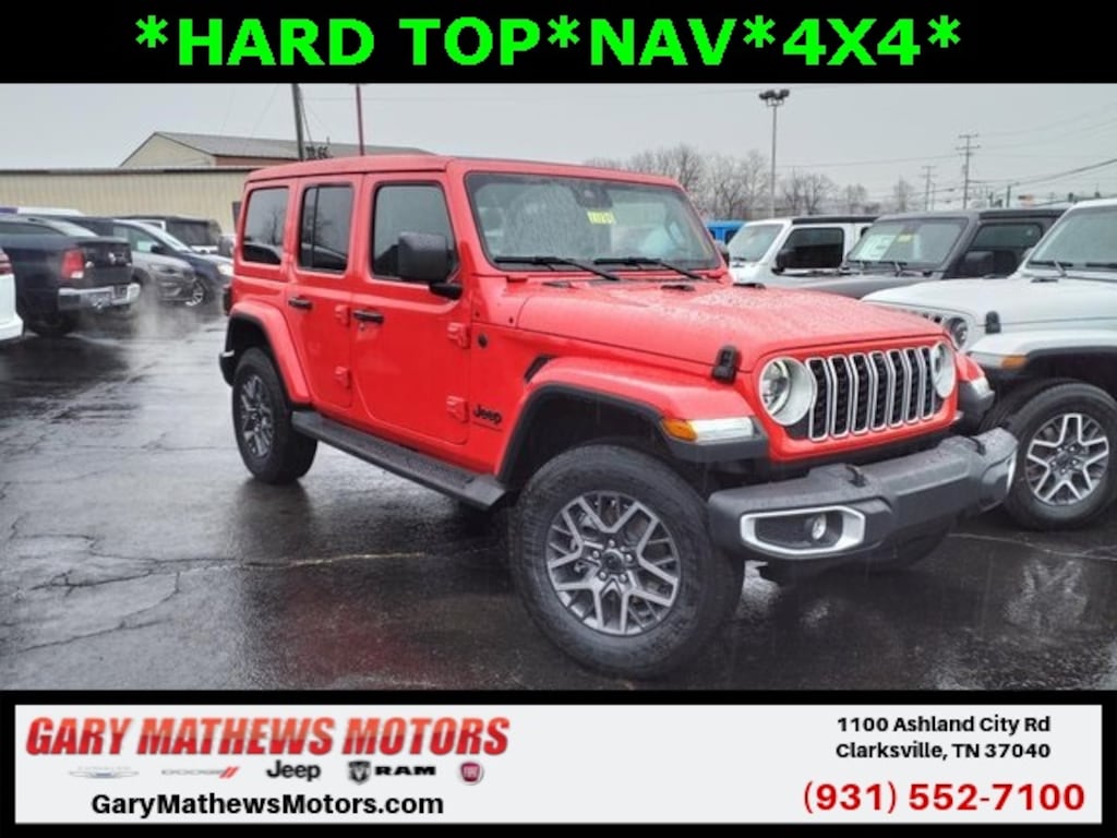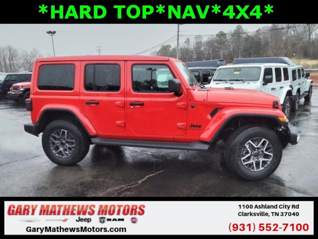 Firecracker Red Clearcoat 2025 Jeep Wrangler Sahara 4WD 8-Speed Automatic 2.0L I4 DOHC Bluetooth, Navigation System/ GPS, New Tires, New Brakes, USB Port, Heated Seats, Remote Start, Rear View Camera/ Backup Camera, Satellite Radio/ XM, Blind Spot Monitor, Push Button Start, Leather Seats, Parking Sensors, Collision Intervention, Radar Cruise Control/ Adaptive Cruise Control, Tow Package, 4WD, UConnect, Apple Car Play, Alloy Wheels, Backup Camera, Navigation System, Safety Package, 110 MPH Vehicle Max Speed Calibration, 12.3" Touchscreen Display, 3.45 Overall Top Gear Ratio, 4-Wheel Disc Brakes, 4G LTE Wi-Fi Hot Spot, 7 & 4 Pin Wiring Harness, 8 Speakers, ABS brakes, Air Conditioning, Alloy wheels, Alpine Premium Audio System, AM/FM radio: SiriusXM, Apple CarPlay, Apple CarPlay/Android Auto, Auto High Beam Headlamp Control, Auto-Dimming Rear-View Mirror, Automatic temperature control, Aux Battery, Auxiliary Switches, Blind Spot & Cross Path Detection, Brake assist, Class II Receiver Hitch, Cloth Low-Back Bucket Seats, Compass, Connected Travel & Traffic Services, Connectivity - US/Canada, Delay-off headlights, Driver door bin, Driver vanity mirror, Dual front impact airbags, Dual front side impact airbags, Electronic Stability Control, Emergency communication system: Jeep Connect, Front anti-roll bar, Front Bucket Seats, Front Center Armrest w/Storage, Front dual zone A/C, Front fog lights, Front reading lights, Fully automatic headlights, Google Android Auto, GPS Navigation, HD Radio, Heated door mirrors, Heated front seats, Heated steering wheel, Heavy Duty Suspension w/Gas Shocks, Illuminated entry, Integrated Off-Road Camera, Integrated roll-over protection, Integrated Voice Command w/Bluetooth, Jeep Trail Rated Kit, Low tire pressure warning, MOPAR All-Weather Floor Mats, Non-Lock Fuel Cap w/o Discriminator, Occupant sensing airbag, Outside temperature display, Overhead airbag, Panic alarm, ParkSense Rear Park Assist System, ParkView Rear Back-Up Camera, Passenger door bin, Passenger vanity mirror, Power door mirrors, Power steering, Power Top Quarter Window Storage Bag, Power windows, Quick Order Package 22G Sahara, Radio data system, Radio: Uconnect 5 Nav w/12.3" Display, Radio: Uconnect 5 w/12.3" Display, Rear anti-roll bar, Rear reading lights, Rear Window Defroster, Rear Window Wiper/Washer, Remote keyless entry, Removable Rear Quarter Windows, Safety Group, Security system, Side Steps, SiriusXM Radio Service, SiriusXM w/360L, Sky 1-Touch Power Top, Speed control, Split folding rear seat, Steering wheel mounted audio controls, Stop-Start Dual Battery System, Tachometer, Technology Group, Telescoping steering wheel, Tilt steering wheel, Traction control, Trailer Tow & Aux Switch Group, Trip computer, Universal Garage Door Opener, Variably intermittent wipers, Voltmeter, Wheels: 18" x 7.5" Machine/Painted Gray. Price includes: $2000 - 2025 National Overaged Select Inventory Bonus Cash $2500 - 2025 National Retail Bonus Cash