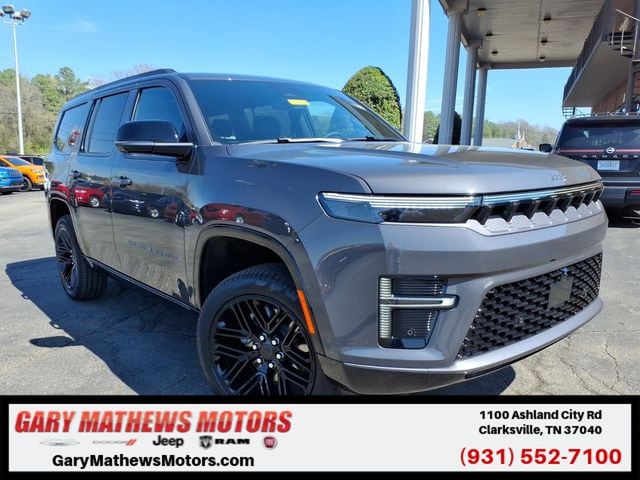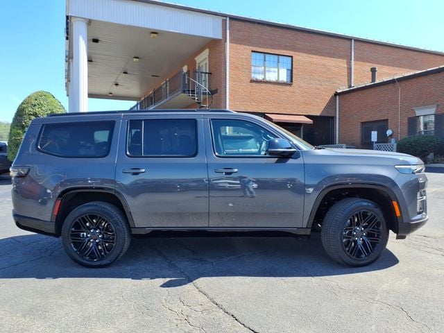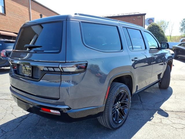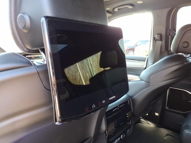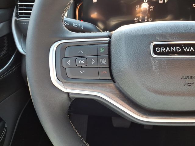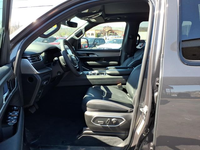 118 Mph Maximum Speed Calibration, 19 Speaker McIntosh Audio System, 2nd Row Manual Window Shades, 3 Panel Sunroof, 3.55 Rear Axle Ratio, 3rd row seats: bench, 4-Wheel Disc Brakes, 9 Speakers, ABS brakes, Air Conditioning, Alloy wheels, AM/FM radio: SiriusXM with 360L, Amazon Fire TV Built-in, Anti-whiplash front head restraints, Apple CarPlay/Android Auto, Audio memory, Augmented HUD, Auto Adjust in Reverse Exterior Mirrors, Auto High-beam Headlights, Auto-dimming door mirrors, Auto-Dimming Exterior Driver Mirror, Auto-dimming Rear-View mirror, Auto-leveling suspension, Automatic temperature control, Black Appearance Package, Black Exterior Accents, Brake assist, Bumpers: body-color, Cargo Cover, Cluster 12" TFT Color Display, Compass, Delay-off headlights, Driver door bin, Driver vanity mirror, Driver's Seat Mounted Armrest, Dual front impact airbags, Dual front side impact airbags, Electronic Stability Control, Emergency communication system: Jeep Connect, Exterior Mirrors Approach Lamps, Exterior Mirrors with Memory, Exterior Mirrors with Supplemental Signals, Exterior Parking Camera Rear, Four wheel independent suspension, Front anti-roll bar, Front Bucket Seats, Front Center Armrest w/Storage, Front dual zone A/C, Front fog lights, Front reading lights, Fully automatic headlights, Garage door transmitter, Heated door mirrors, Heated Exterior Mirrors, Heated front seats, Heated rear seats, Heated steering wheel, Illuminated entry, Instrument Panel, Interior Rear Facing Camera, Knee airbag, Leather Trimmed Bucket Seats, Limited Reserve Package, Low tire pressure warning, Luxury Front and Rear Floor Mats, Memory seat, MyFlexCare Service Plan, Normal Duty Suspension, Occupant sensing airbag, Outside temperature display, Overhead airbag, Overhead console, P and P Park and Unpark Assist with Stop System, Panic alarm, Passenger door bin, Passenger seat mounted armrest, Passenger vanity mirror, Power Deployable Running Boards, Power door mirrors, Power driver seat, Power Liftgate, Power passenger seat, Power steering, Power windows, Quadra-Lift Air Suspension, Quick Order Package 29D Reserve, Radio data system, Radio: Uconnect 5 Nav with 12.0" Display, Rain sensing wipers, Rear air conditioning, Rear anti-roll bar, Rear reading lights, Rear seat center armrest, Rear Seat Video Group I, Rear window defroster, Rear window wiper, Reclining 3rd row seat, Remote keyless entry, Reversible Carpet/Vinyl Cargo Mat, Seatback Video Screens, Security system, Semi Active Damping, Side Distance Warning, Smartphone as a Key Prep, Speed control, Speed-sensing steering, Speed-Sensitive Wipers, Split folding rear seat, Steering wheel me