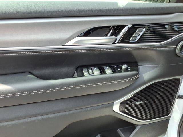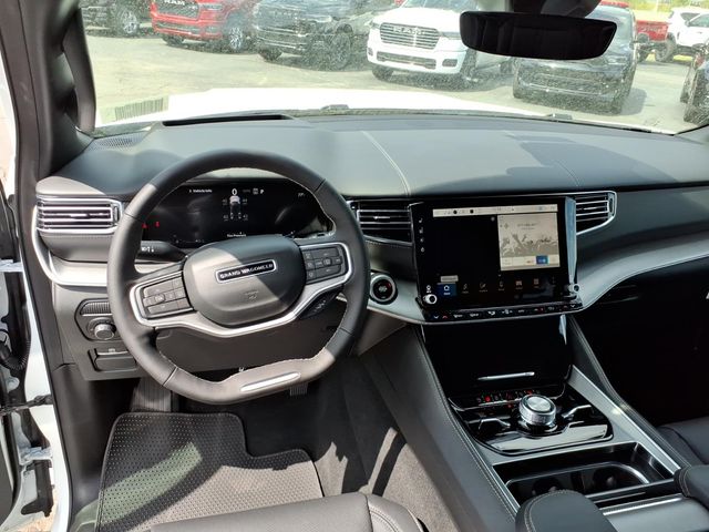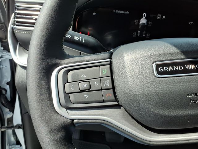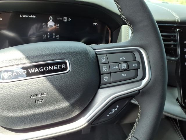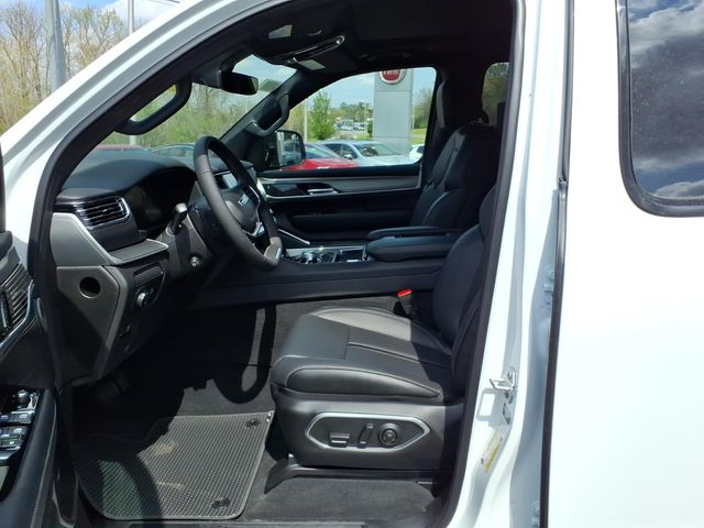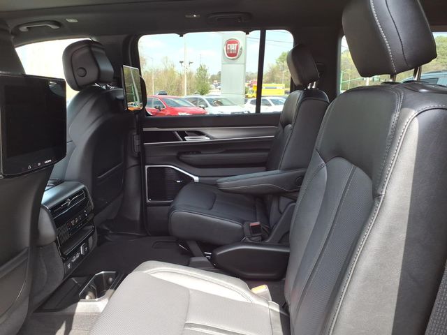 118 Mph Maximum Speed Calibration, 19 Speaker McIntosh Audio System, 2nd Row Manual Window Shades, 3 Panel Sunroof, 3.55 Rear Axle Ratio, 3rd row seats: bench, 4-Wheel Disc Brakes, 9 Speakers, ABS brakes, Air Conditioning, Alloy wheels, AM/FM radio: SiriusXM with 360L, Amazon Fire TV Built-in, Anti-whiplash front head restraints, Apple CarPlay/Android Auto, Audio memory, Augmented HUD, Auto Adjust in Reverse Exterior Mirrors, Auto High-beam Headlights, Auto-dimming door mirrors, Auto-Dimming Exterior Driver Mirror, Auto-dimming Rear-View mirror, Auto-leveling suspension, Automatic temperature control, Black Appearance Package, Black Exterior Accents, Brake assist, Bumpers: body-color, Cargo Cover, Cluster 12" TFT Color Display, Compass, Delay-off headlights, Driver door bin, Driver vanity mirror, Driver's Seat Mounted Armrest, Dual front impact airbags, Dual front side impact airbags, Electronic Stability Control, Emergency communication system: Jeep Connect, Exterior Mirrors Approach Lamps, Exterior Mirrors with Memory, Exterior Mirrors with Supplemental Signals, Exterior Parking Camera Rear, Four wheel independent suspension, Front anti-roll bar, Front Bucket Seats, Front Center Armrest w/Storage, Front dual zone A/C, Front fog lights, Front reading lights, Fully automatic headlights, Garage door transmitter, Heated door mirrors, Heated Exterior Mirrors, Heated front seats, Heated rear seats, Heated steering wheel, Illuminated entry, Instrument Panel, Interior Rear Facing Camera, Knee airbag, Leather Trimmed Bucket Seats, Limited Reserve Package, Low tire pressure warning, Luxury Front and Rear Floor Mats, Memory seat, MyFlexCare Service Plan, Navigation System, Normal Duty Suspension, Occupant sensing airbag, Outside temperature display, Overhead airbag, Overhead console, P and P Park and Unpark Assist with Stop System, Panic alarm, Passenger door bin, Passenger seat mounted armrest, Passenger vanity mirror, Power Deployable Running Boards, Power door mirrors, Power driver seat, Power Liftgate, Power passenger seat, Power steering, Power windows, Quadra-Lift Air Suspension, Quick Order Package 29D Reserve, Radio data system, Radio: Uconnect 5 Nav with 12.0" Display, Rain sensing wipers, Rear air conditioning, Rear anti-roll bar, Rear reading lights, Rear seat center armrest, Rear Seat Video Group I, Rear window defroster, Rear window wiper, Reclining 3rd row seat, Remote keyless entry, Reversible Carpet/Vinyl Cargo Mat, Seatback Video Screens, Security system, Semi Active Damping, Side Distance Warning, Smartphone as a Key Prep, Speed control, Speed-sensing steering, Speed-Sensitive Wipers, Split folding rear seat, Steeri