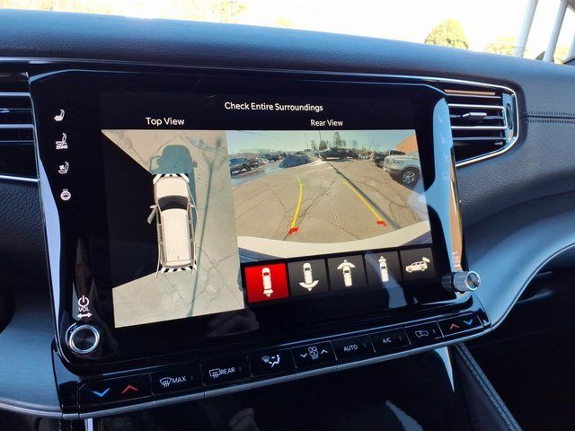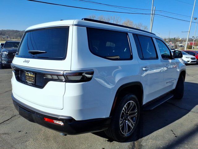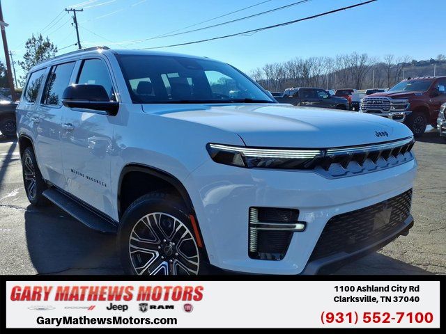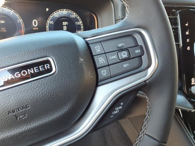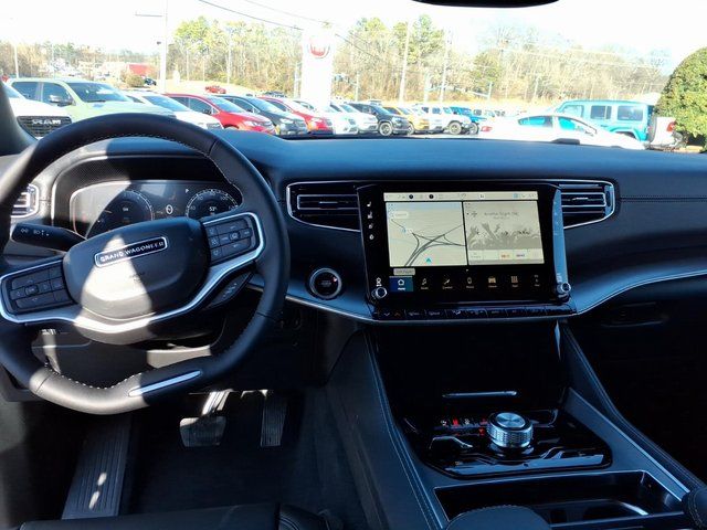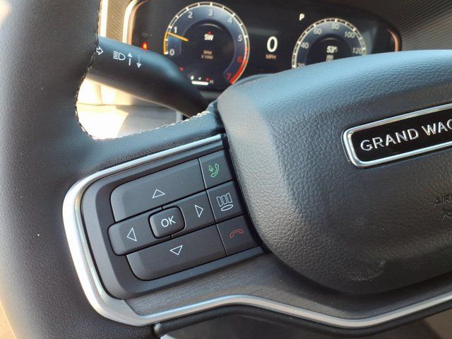 118 Mph Maximum Speed Calibration, 3 Panel Sunroof, 3.92 Rear Axle Ratio, 3rd Row 60/40 Power Recline Seat, 3rd row seats: bench, 4-Wheel Disc Brakes, 9 Speakers, ABS brakes, Adjustable Roof Rail Crossbars, Air Conditioning, Alloy wheels, AM/FM radio: SiriusXM with 360L, Anti-whiplash front head restraints, Apple CarPlay/Android Auto, Audio memory, Auto Adjust in Reverse Exterior Mirrors, Auto High-beam Headlights, Auto Power Folding Exterior Mirrors, Auto Power Folding Mirrors, Auto-dimming door mirrors, Auto-Dimming Exterior Driver Mirror, Auto-dimming Rear-View mirror, Automatic temperature control, Blind Spot with Trailer Detection, Brake assist, Bumpers: body-color, Cargo Cover, Compass, Delay-off headlights, Driver door bin, Driver vanity mirror, Driver's Seat Mounted Armrest, Dual front impact airbags, Dual front side impact airbags, Electronic Rear Limited Slip Differential, Electronic Stability Control, Emergency communication system: Jeep Connect, Exterior Mirrors Approach Lamps, Exterior Mirrors with Memory, Exterior Mirrors with Supplemental Signals, Exterior Parking Camera Rear, Four wheel independent suspension, Front anti-roll bar, Front Bucket Seats, Front Center Armrest w/Storage, Front dual zone A/C, Front fog lights, Front reading lights, Fully automatic headlights, Garage door transmitter, HD Trailer Tow Package, Heated door mirrors, Heated Exterior Mirrors, Heated front seats, Heated steering wheel, Illuminated entry, Interior Rear Facing Camera, Knee airbag, Leather Trimmed Bucket Seats, Low tire pressure warning, Luxury Front and Rear Floor Mats, Memory seat, MyFlexCare Service Plan, Navigation System, Normal Duty Suspension, Occupant sensing airbag, Outside temperature display, Overhead airbag, Overhead console, P and P Park and Unpark Assist with Stop System, Panic alarm, Passenger door bin, Passenger seat mounted armrest, Passenger vanity mirror, Power door mirrors, Power driver seat, Power Liftgate, Power passenger seat, Power steering, Power windows, Premium Group I, Quick Order Package 29E Grand Wagoneer, Radio data system, Radio: Uconnect 5 Nav with 12.0" Display, Rain sensing wipers, Rear air conditioning, Rear anti-roll bar, Rear reading lights, Rear seat center armrest, Rear window defroster, Rear window wiper, Reclining 3rd row seat, Remote keyless entry, Removable Rear Tow Hooks, Reversible Carpet/Vinyl Cargo Mat, Security system, Selec-Speed Control, Side Distance Warning, Speed control, Speed-sensing steering, Speed-Sensitive Wipers, Split folding rear seat, Steering wheel memory, Steering wheel mounted audio controls, Surround View Camera System, Tachometer, Telescoping steering wheel, Tilt stee