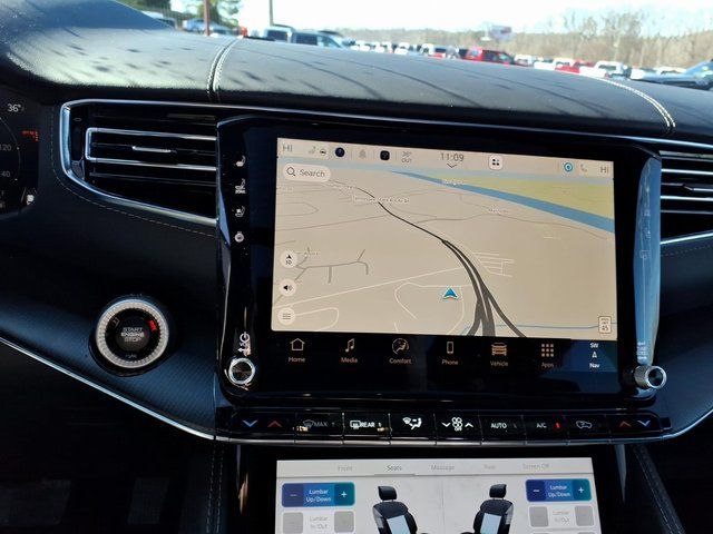19 Speakers, 3.55 Rear Axle Ratio, 3rd row seats: bench, 4-Wheel Disc Brakes, ABS brakes, Active Cruise Control, Air Conditioning, Alloy wheels, AM/FM radio: SiriusXM with 360L, Anti-whiplash front head restraints, Audio memory, Auto High-beam Headlights, Auto-leveling suspension, Automatic temperature control, Black Chiseled Metal Interior Accent, Black Exterior Accents, Brake assist, Delay-off headlights, Driver's Seat Mounted Armrest, Dual front impact airbags, Dual front side impact airbags, Electronic Stability Control, Emergency communication system: Jeep Connect, Exterior Parking Camera Rear, Four wheel independent suspension, Front anti-roll bar, Front Bucket Seats, Front dual zone A/C, Front fog lights, Fully automatic headlights, Heated front seats, Heated rear seats, Knee airbag, Leather Trimmed Bucket Seats, Low tire pressure warning, Memory seat, Navigation System, Normal Duty Suspension, Obsidian Appearance Package, Occupant sensing airbag, Outside temperature display, Overhead airbag, Overhead console, Panic alarm, Passenger seat mounted armrest, Passenger vanity mirror, Power adjustable front head restraints, Power driver seat, Power Liftgate, Power moonroof, Power passenger seat, Power steering, Power windows, Quick Order Package 29Z Obsidian, Radio data system, Radio: Uconnect 5 Nav with 12.0" Display, Rain sensing wipers, Rear air conditioning, Rear anti-roll bar, Rear dual zone A/C, Rear reading lights, Rear seat center armrest, Rear window defroster, Rear window wiper, Reclining 3rd row seat, Remote keyless entry, Security system, Selec-Speed Control, Speed control, Speed-sensing steering, Speed-Sensitive Wipers, Split folding rear seat, Steering wheel memory, Steering wheel mounted audio controls, Tachometer, Telescoping steering wheel, Tilt steering wheel, Titanium Daylight Opening Upper, Titanium Upper Grille Applique, Traction control, Trip computer, Two Tone Paint Group, Variably intermittent wipers, Ventilated front seats, Ventilated rear seats, Voltmeter, Wheels: 22" x 9" Tinted Polished with Black Insert, 118 Mph Maximum Speed Calibration, Apple CarPlay/Android Auto, Auto Adjust in Reverse Exterior Mirrors, Auto-dimming door mirrors, Auto-Dimming Exterior Driver Mirror, Auto-dimming Rear-View mirror, Bumpers: body-color, Compass, Driver door bin, Driver vanity mirror, Exterior Mirrors Approach Lamps, Exterior Mirrors with Memory, Exterior Mirrors with Supplemental Signals, Front Center Armrest w/Storage, Front reading lights, Garage door transmitter, Heated door mirrors, Heated Exterior Mirrors, Heated steering wheel, Illuminated entry, Leather steering wheel, MyFlexCare Service Plan, Passenger door bin, Power door