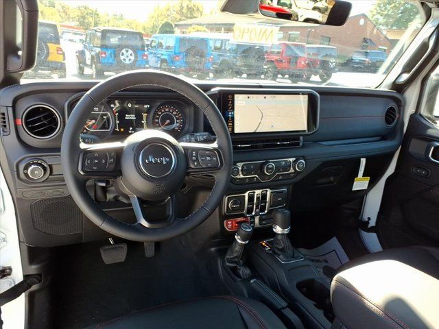 12.3" Touchscreen Display, 4-Wheel Disc Brakes, 4G LTE Wi-Fi Hot Spot, 8 Speakers, ABS brakes, Air Conditioning, Alpine Premium Audio System, AM/FM radio: SiriusXM with 360L, Apple CarPlay, Auto-Dimming Rear-View Mirror, Automatic temperature control, Aux Battery, Brake assist, Connected Travel and Traffic Services, Connectivity - US/Canada, Convenience Group, Delay-off headlights, Dual front impact airbags, Dual front side impact airbags, Electronic Stability Control, Emergency communication system: Jeep Connect, For More Info, Call 800-643-2112, Front anti-roll bar, Front dual zone A/C, Front fog lights, Fully automatic headlights, Google Android Auto, GPS Navigation, HD Radio, Heated Front Seats, Heated Steering Wheel, Integrated Center Stack Radio, Integrated Off-Road Camera, Integrated roll-over protection, Integrated Voice Command with Bluetooth, Low tire pressure warning, Occupant sensing airbag, Overhead airbag, Panic alarm, ParkView Rear Back-Up Camera, Performance Suspension, Power steering, Power Top Quarter Window Storage Bag, Power windows, Quick Order Package 24R Rubicon, Radio data system, Radio: Uconnect 5 Navigation with 12.3" Display, Radio: Uconnect 5 with 12.3" Display, Rear anti-roll bar, Rear Window Defroster, Rear Window Wiper/Washer, Remote keyless entry, Removable Rear Quarter Windows, Security system, SiriusXM Radio Service, SiriusXM with 360L, Speed control, Steering wheel mounted audio controls, Stop-Start Dual Battery System, Technology Group, Traction control, Universal Garage Door Opener, 4.10 Rear Axle Ratio, Alloy wheels, Apple CarPlay/Android Auto, Auxiliary Switches, Class II Receiver Hitch, Cloth Low-Back Bucket Seats, Compass, Driver door bin, Driver vanity mirror, Front Bucket Seats, Front Center Armrest w/Storage, Front reading lights, Heated door mirrors, Illuminated entry, Jeep Trail Rated Kit, MOPAR All-Weather Floor Mats, Myflexcare Service Plan, Non-Lock Fuel Cap Without Discriminator, Outside temperature display, Passenger door bin, Passenger vanity mirror, Power door mirrors, Rear reading lights, Split folding rear seat, Tachometer, Telescoping steering wheel, Tilt steering wheel, Trip computer, Variably intermittent wipers, Voltmeter, Wheels: 17" x 7.5" Machined/Painted Black, 12.3" Touchscreen Display, 4-Wheel Disc Brakes, 4G LTE Wi-Fi Hot Spot, 8 Speakers, ABS brakes, Air Conditioning, Alpine Premium Audio System, AM/FM radio: SiriusXM with 360L, Apple CarPlay, Auto-Dimming Rear-View Mirror, Automatic temperature control, Aux Battery, Brake assist, Connected Travel and Traffic Serv Price includes: $1000 - 2026 National Retail Bonus Cash $4000 - 2026 National Select Inventor