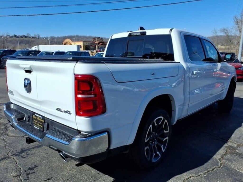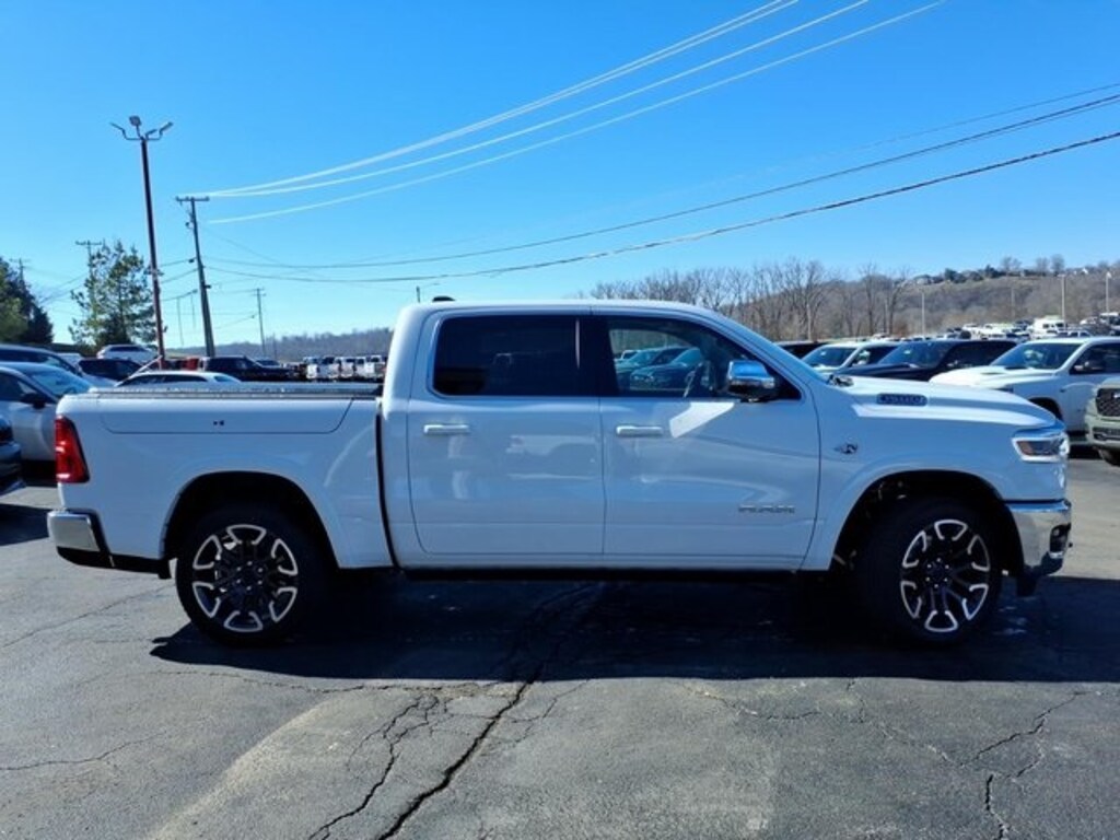 12-Way/1-Way Trailer Connector, 14.4" Touchscreen Display, 19 Speakers, 240 Amp Alternator, 3.92 Rear Axle Ratio, 4-Wheel Disc Brakes, 4G LTE Wi-Fi Hot Spot, ABS brakes, Active Noise Control System, Adjustable pedals, Air Conditioning, Alloy wheels, AM/FM radio, Apple CarPlay, Apple CarPlay/Android Auto, Audio memory, Auto High-beam Headlights, Auto Power-Folding Mirrors, Auto-dimming door mirrors, Auto-Dimming Exterior Driver Mirror, Auto-dimming Rear-View mirror, Auto-leveling suspension, Automatic temperature control, Bed Utility Group, Bodyside moldings, Brake assist, Bumpers: chrome, Chrome Exterior Mirrors, Compass, Connected Travel and Traffic Services, Connectivity - US/Canada, Convex Wide-Angle Exterior Mirror Insert, Delay-off headlights, Disassociated Touchscreen Display, Dome Dual LED Reading Lamp, Driver door bin, Driver vanity mirror, Drowsy Driver Detection, Dual front impact airbags, Dual front side impact airbags, Dual-Pane Panoramic Sunroof, Electronic Stability Control, Evasive Steer Assist, Exterior 115V AC Outlet, Exterior Mirrors Courtesy Lamps, Exterior Mirrors with Heating Element, Exterior Mirrors with Memory, Exterior Mirrors with Supplemental Signals, Exterior Parking Camera Rear, Front anti-roll bar, Front Bucket Seats, Front Center Armrest w/Storage, Front dual zone A/C, Front fog lights, Front License Plate Bracket, Front reading lights, Front wheel independent suspension, Fully automatic headlights, Garage door transmitter, Genuine wood console insert, Genuine wood dashboard insert, Genuine wood door panel insert, Global Telematics Box Module, Google Android Auto, GPS Antenna Input, GPS Navigation, Grille Surround 4 Chrome Texture 5 Chrome, Hands-Free Active Driving Assist System, HD Radio, Heads-Up Display, Heated door mirrors, Heated front seats, Heated rear seats, Heated steering wheel, Illuminated entry, Integrated Center Stack Radio, Integrated Voice Command with Bluetooth, Intersection Collision Assist System, Leather steering wheel, LED CHMSL Lamp, LED Dome/Reading Lamp, Limited Level A Equipment Group, Longhorn Badge, Longhorn Instrument Cluster Theme 3, Low tire pressure warning, Manufacturer's Statement of Origin, Memory seat, MOPAR 4 Adjustable Cargo Tie-Down Hooks, Multi-Function Tailgate, Navigation System, Occupant sensing airbag, Outside temperature display, Overhead airbag, Overhead console, Panic alarm, Passenger door bin, Passenger vanity mirror, Pedal memory, Pirelli Brand Tires, Power door mirrors, Power driver seat, Power passenger seat, Power steering, Power windows, Price includes: $1000 - 2026 National Bonus Cash $3500 - 2026 National Retail Co