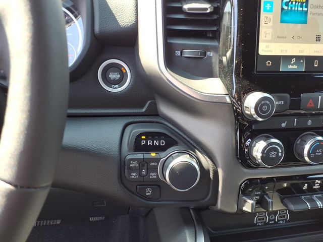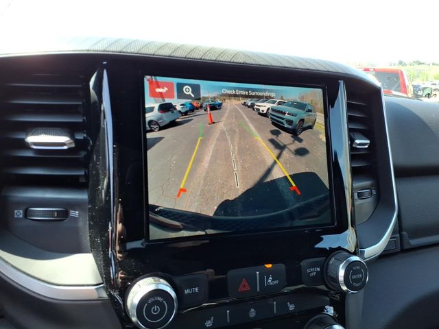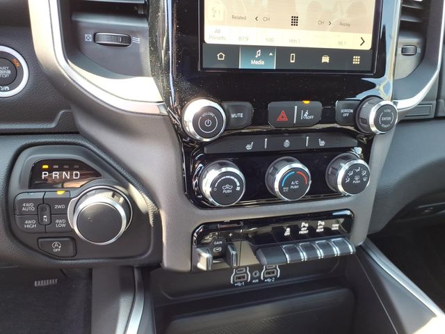 115V Auxiliary Power Outlet, 2nd Row in Floor Storage Bins, 3 Rear Seat Head Restraints, 33 Gallon Fuel Tank, 4 Way Front Headrests, 4-Wheel Disc Brakes, 400W Inverter, 48V Belt Starter Generator, 4G LTE Wi-Fi Hot Spot, 6 Speakers, 9 Amplified Speakers with Subwoofer, ABS brakes, Accent Color Door Handles, Accent Color Premium Power Mirrors, Accent Color Tailgate Handle, Air Conditioning, Alloy wheels, AM/FM radio, Anti-Spin Differential Rear Axle, Apple CarPlay, Apple CarPlay/Android Auto, Auto High-beam Headlights, Auto Power-Folding Mirrors, Auto-Dimming Exterior Driver Mirror, Auto-Dimming Rear-View Mirror, Big Horn Level 1 Equipment Group, Black Exterior Mirrors, Black Exterior Truck Badging, Black Headlamp Bezels, Black Interior Accents, Black Painted Exterior Mirrors Caps, Black Premium Power Mirrors, Black Tail Lamp Bezels, Body Color Fender Flares, Body Color Front Bumper, Body Color Rear Bumper with Step Pads, Brake assist, Bucket Seats, Bumpers: chrome, Center Console Parts Module, Cloth Bucket Seats, Compass, Connectivity - US/Canada, Convex Wide-Angle Exterior Mirror Insert, Delay-off headlights, Deluxe Cloth Bucket Seats, Driver door bin, Dual Exhaust with Black Tips, Dual front impact airbags, Dual front side impact airbags, Electronic Stability Control, Exterior Mirrors Courtesy Lamps, Exterior Mirrors with Heating Element, Exterior Mirrors with Supplemental Signals, Front anti-roll bar, Front Bucket Seats, Front Center Armrest w/Storage, Front fog lights, Front License Plate Bracket, Front reading lights, Front Seat Back Map Pockets, Front wheel independent suspension, Full Length Floor Console, Fully automatic headlights, Global Telematics Box Module, Glove Box Lamp, Google Android Auto, GPS Antenna Input, Grille Black Surround Black Mesh, Heated door mirrors, Heated Front Seats, Heated Steering Wheel, Illuminated entry, Integrated Center Stack Radio, Integrated Voice Command with Bluetooth, Leather Wrapped Steering Wheel, Low tire pressure warning, Manual Adjust 4-Way Driver Seat, Manual Adjust 4-Way Front Passenger Seat, Manual Folding Exterior Mirrors, Manufacturer's Statement of Origin, MOPAR Front and Rear Rubber Floor Mats, Night Edition, Occupant sensing airbag, Outside temperature display, Overhead airbag, Overhead console, Panic alarm, ParkView Rear Back-Up Camera, Passenger door bin, Passenger vanity mirror, Power 2-Way Driver Lumbar Adjust, Power Adjust 8-Way Driver Seat, Power Adjustable Pedals, Power door mirrors, Power steering, Power windows, Quick Order Package 23Z Big Horn, Radio data system, Radio: Uconnect 5 W with 8.4" Display, RAM Grille Badge - Price includes: $3500 - 2026 National Retail