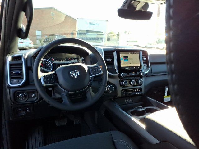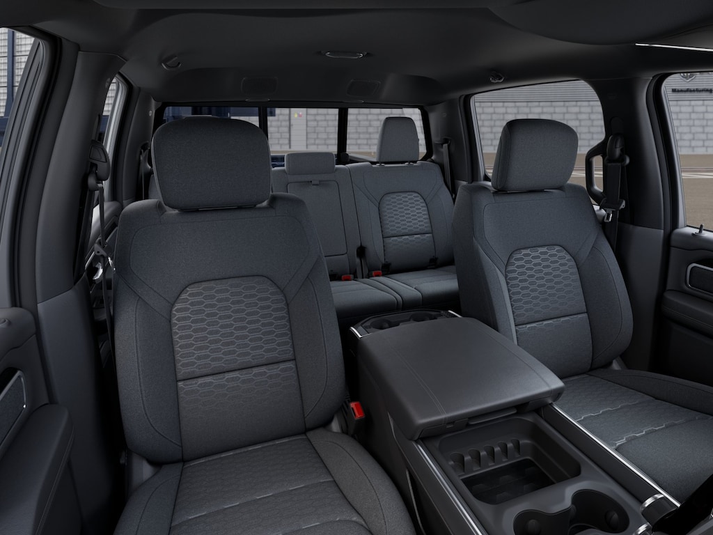 115V Auxiliary Power Outlet, 2nd Row in Floor Storage Bins, 3 Rear Seat Head Restraints, 33 Gallon Fuel Tank, 4 Way Front Headrests, 4-Wheel Disc Brakes, 400W Inverter, 48V Belt Starter Generator, 4G LTE Wi-Fi Hot Spot, 6 Speakers, 9 Amplified Speakers with Subwoofer, ABS brakes, Air Conditioning, Alloy wheels, AM/FM radio, Anti-Spin Differential Rear Axle, Apple CarPlay, Apple CarPlay/Android Auto, Auto High-beam Headlights, Auto Power-Folding Mirrors, Auto-Dimming Exterior Driver Mirror, Auto-Dimming Rear-View Mirror, Big Horn Level 1 Equipment Group, Black Exterior Mirrors, Black Interior Accents, Black Premium Power Mirrors, Body Color Door Handles, Body Color Fender Flares, Body Color Front Bumper, Body Color Rear Bumper with Step Pads, Body Color Tailgate Handle, Brake assist, Bucket Seats, Bumpers: chrome, Center Console Parts Module, Cloth Bucket Seats, Compass, Connectivity - US/Canada, Convex Wide-Angle Exterior Mirror Insert, Delay-off headlights, Deluxe Cloth Bucket Seats, Driver door bin, Dual front impact airbags, Dual front side impact airbags, Electronic Stability Control, Exterior Mirrors Courtesy Lamps, Exterior Mirrors with Heating Element, Exterior Mirrors with Supplemental Signals, Front anti-roll bar, Front Bucket Seats, Front Center Armrest w/Storage, Front fog lights, Front License Plate Bracket, Front reading lights, Front Seat Back Map Pockets, Front wheel independent suspension, Full Length Floor Console, Fully automatic headlights, Global Telematics Box Module, Glove Box Lamp, Google Android Auto, GPS Antenna Input, Grille Surround 1 Body Color Texture 1 Black, Heated door mirrors, Heated Front Seats, Heated Steering Wheel, Illuminated entry, Integrated Center Stack Radio, Integrated Voice Command with Bluetooth, Leather Wrapped Steering Wheel, Low tire pressure warning, Manual Adjust 4-Way Driver Seat, Manual Adjust 4-Way Front Passenger Seat, Manual Folding Exterior Mirrors, Manufacturer's Statement of Origin, MOPAR Front and Rear Rubber Floor Mats, Occupant sensing airbag, Outside temperature display, Overhead airbag, Overhead console, Panic alarm, ParkView Rear Back-Up Camera, Passenger door bin, Passenger vanity mirror, Power 2-Way Driver Lumbar Adjust, Power Adjust 8-Way Driver Seat, Power Adjustable Pedals, Power door mirrors, Power steering, Power windows, Quick Order Package 23Z Big Horn, Quick Order Package 27Z Big Horn, Radio data system, Radio: Uconnect 5 W with 8.4" Display, RAM Grille Badge - Chrome, Rear 60/40 Folding Seat, Rear anti-roll bar, Rear Center Armrest, Rear Dome with on/Off Switch Lamp, Rear P Price includes: $3500 - 2026 National Retail
