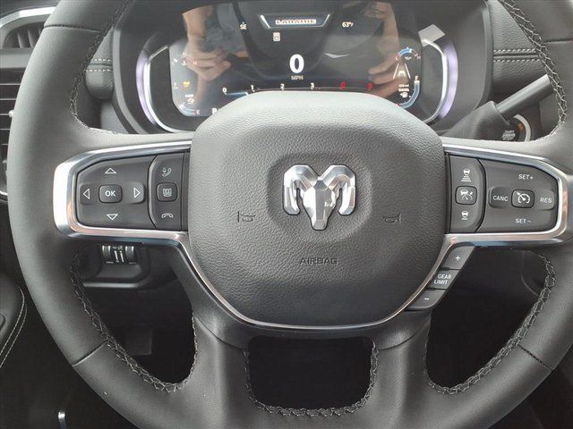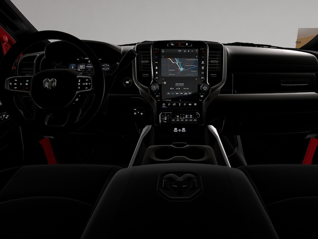 #1 Seat Foam Cushion, 10 Speakers, 115V Auxiliary Rear Power Outlet, 2 Way Rear Headrest Seat, 20" x 8.0" Polished Aluminum Wheels, 2nd Row in Floor Storage Bins, 4 Way Front Headrests, 4-Wheel Disc Brakes, 4G LTE Wi-Fi Hot Spot, 5th Wheel/Gooseneck Towing Prep Group, ABS brakes, Active Lane Management System, Adaptive Steering System, Air Conditioning, Alexa Built-in, Alloy wheels, AM/FM radio: SiriusXM with 360L, Anti-Spin Differential Rear Axle, Apple CarPlay, Apple CarPlay/Android Auto, Auto Adjust in Reverse Exterior Mirrors, Auto Dim Exterior Mirror, Auto High Beam Headlamp Control, Auto Power-Folding Mirrors, Auto-Dimming Exterior Passenger Mirror, Auto-dimming Rear-View mirror, Automatic temperature control, Black Wheel Center Hub, Brake assist, Bright Front Bumper, Bright Rear Bumper, Bucket Seats, Bumpers: body-color, Center Hub, Center Stop Lamp with Cargo View Camera, Chrome Bumper Package, Chrome Exterior Mirrors, Clearance Lamps, Compass, Connected Travel and Traffic Services, Connectivity - US/Canada, Dash Pass Thru Wire Circuits, Delay-off headlights, Disassociated Touchscreen Display, Driver door bin, Driver vanity mirror, Drowsy Driver Detection, Dual front impact airbags, Dual front side impact airbags, Dual Wireless Charging Pad, Electronic Stability Control, Emergency Vehicle Alert System (EVAS), Exterior Mirrors Courtesy Lamps, Exterior Mirrors with Heating Element, Exterior Mirrors with Memory, Exterior Mirrors with Supplemental Signals, Foam Bottle Insert (door Trim Panel), Folding Flat Load Floor Storage, For Details, Visit DriveUconnect.com, For More Info, Call 800-643-2112, Forward and Reverse Utility Lights, Front anti-roll bar, Front Center Armrest w/Storage, Front dual zone A/C, Front fog lights, Front reading lights, Front Seat Back Map Pockets, Full Length Upgraded Floor Console, Fully automatic headlights, Garage door transmitter, Global Telematics Box Module, Google Android Auto, GPS Antenna Input, GPS Navigation, HD Radio, Heated door mirrors, Heated Front Seats, Heated front seats, Heated Steering Wheel, Heated steering wheel, High Back Seats, Illuminated entry, Instrument Panel Mounted Auxiliary Switches, Integrated Voice Command with Bluetooth, Laramie Level 1 Plus Equipment Group, Leather Trim 40/20/40 Bench Seat, Leather Trimmed Bucket Seats, LED Bed Lighting, Low tire pressure warning, Manufacturer's Statement of Origin, Mirror Running Lights, MOPAR Deployable Bed Step, MOPAR Front and Rear Rubber Floor Mats, MOPAR Spray in Bedliner, Navigation System, Occupant sensing airbag, Off-Road Info Pages, Outside temperature display, Overhead airbag, Overhead console, Price includes: $1000 - 2026 National