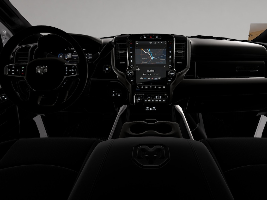 #1 Seat Foam Cushion, 10 Speakers, 115V Auxiliary Rear Power Outlet, 2 Way Rear Headrest Seat, 20" x 8.0" Polished Aluminum Wheels, 2nd Row in Floor Storage Bins, 4 Way Front Headrests, 4-Wheel Disc Brakes, 4G LTE Wi-Fi Hot Spot, 5th Wheel/Gooseneck Towing Prep Group, ABS brakes, Active Lane Management System, Adaptive Steering System, Air Conditioning, Alexa Built-in, Alloy wheels, AM/FM radio: SiriusXM with 360L, Anti-Spin Differential Rear Axle, Apple CarPlay, Apple CarPlay/Android Auto, Auto Adjust in Reverse Exterior Mirrors, Auto Dim Exterior Mirror, Auto High Beam Headlamp Control, Auto Power-Folding Mirrors, Auto-Dimming Exterior Passenger Mirror, Auto-dimming Rear-View mirror, Automatic temperature control, Black Wheel Center Hub, Brake assist, Bright Front Bumper, Bright Rear Bumper, Bucket Seats, Bumpers: body-color, Center Hub, Center Stop Lamp with Cargo View Camera, Chrome Bumper Package, Chrome Exterior Mirrors, Clearance Lamps, Compass, Connected Travel and Traffic Services, Connectivity - US/Canada, Dash Pass Thru Wire Circuits, Delay-off headlights, Disassociated Touchscreen Display, Driver door bin, Driver vanity mirror, Drowsy Driver Detection, Dual front impact airbags, Dual front side impact airbags, Dual Wireless Charging Pad, Electronic Stability Control, Emergency Vehicle Alert System (EVAS), Exterior Mirrors Courtesy Lamps, Exterior Mirrors with Heating Element, Exterior Mirrors with Memory, Exterior Mirrors with Supplemental Signals, Foam Bottle Insert (door Trim Panel), Folding Flat Load Floor Storage, For Details, Visit DriveUconnect.com, For More Info, Call 800-643-2112, Forward and Reverse Utility Lights, Front anti-roll bar, Front Center Armrest w/Storage, Front dual zone A/C, Front fog lights, Front reading lights, Front Seat Back Map Pockets, Full Length Upgraded Floor Console, Fully automatic headlights, Garage door transmitter, Global Telematics Box Module, Google Android Auto, GPS Antenna Input, GPS Navigation, HD Radio, Heated door mirrors, Heated Front Seats, Heated front seats, Heated Steering Wheel, Heated steering wheel, High Back Seats, Illuminated entry, Instrument Panel Mounted Auxiliary Switches, Integrated Voice Command with Bluetooth, Laramie Level 1 Plus Equipment Group, Leather Trim 40/20/40 Bench Seat, Leather Trimmed Bucket Seats, LED Bed Lighting, Low tire pressure warning, Manufacturer's Statement of Origin, Mirror Running Lights, MOPAR Deployable Bed Step, MOPAR Front and Rear Rubber Floor Mats, MOPAR Spray in Bedliner, Navigation System, Occupant sensing airbag, Off-Road Info Pages, Outside temperature display, Overhead airbag, Overhead consol Price includes: $1000 - 2026 National