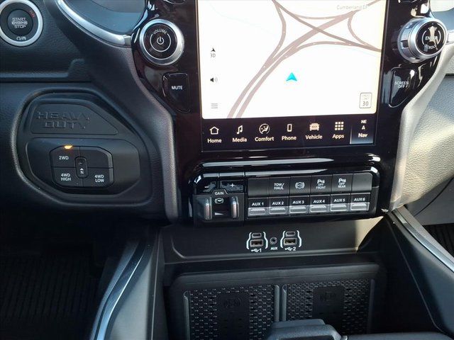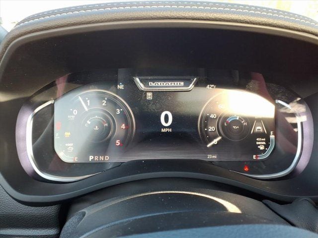 #1 Seat Foam Cushion, 10 Speakers, 115V Auxiliary Rear Power Outlet, 2 Way Rear Headrest Seat, 20" x 8.0" Polished Aluminum Wheels, 2nd Row in Floor Storage Bins, 4 Way Front Headrests, 4-Wheel Disc Brakes, 4G LTE Wi-Fi Hot Spot, 5th Wheel/Gooseneck Towing Prep Group, ABS brakes, Active Lane Management System, Adaptive Steering System, Air Conditioning, Alexa Built-in, Alloy wheels, AM/FM radio: SiriusXM with 360L, Anti-Spin Differential Rear Axle, Apple CarPlay, Apple CarPlay/Android Auto, Auto Adjust in Reverse Exterior Mirrors, Auto Dim Exterior Mirror, Auto High Beam Headlamp Control, Auto Power-Folding Mirrors, Auto-Dimming Exterior Passenger Mirror, Auto-dimming Rear-View mirror, Automatic temperature control, Black Wheel Center Hub, Brake assist, Bright Front Bumper, Bright Rear Bumper, Bucket Seats, Bumpers: body-color, Center Hub, Center Stop Lamp with Cargo View Camera, Chrome Bumper Package, Chrome Exterior Mirrors, Clearance Lamps, Compass, Connected Travel and Traffic Services, Connectivity - US/Canada, Dash Pass Thru Wire Circuits, Delay-off headlights, Disassociated Touchscreen Display, Driver door bin, Driver vanity mirror, Drowsy Driver Detection, Dual front impact airbags, Dual front side impact airbags, Dual Wireless Charging Pad, Electronic Stability Control, Emergency Vehicle Alert System (EVAS), Exterior Mirrors Courtesy Lamps, Exterior Mirrors with Heating Element, Exterior Mirrors with Memory, Exterior Mirrors with Supplemental Signals, Foam Bottle Insert (door Trim Panel), Folding Flat Load Floor Storage, For Details, Visit DriveUconnect.com, For More Info, Call 800-643-2112, Forward and Reverse Utility Lights, Front anti-roll bar, Front Center Armrest w/Storage, Front dual zone A/C, Front fog lights, Front reading lights, Front Seat Back Map Pockets, Full Length Upgraded Floor Console, Fully automatic headlights, Garage door transmitter, Global Telematics Box Module, Google Android Auto, GPS Antenna Input, GPS Navigation, HD Radio, Heated door mirrors, Heated Front Seats, Heated front seats, Heated Steering Wheel, Heated steering wheel, High Back Seats, Illuminated entry, Instrument Panel Mounted Auxiliary Switches, Integrated Voice Command with Bluetooth, Laramie Level 1 Plus Equipment Group, Leather Trim 40/20/40 Bench Seat, Leather Trimmed Bucket Seats, LED Bed Lighting, Low tire pressure warning, Manufacturer's Statement of Origin, Mirror Running Lights, MOPAR Deployable Bed Step, MOPAR Front and Rear Rubber Floor Mats, MOPAR Spray in Bedliner, Navigation System, Occupant sensing airbag, Off-Road Info Pages, Outside temperature display, Overhead airbag, Overhe Price includes: $1000 - 2026 National
