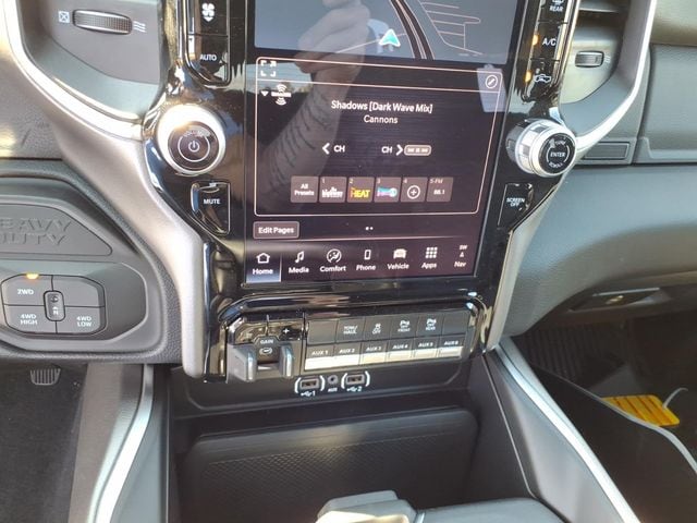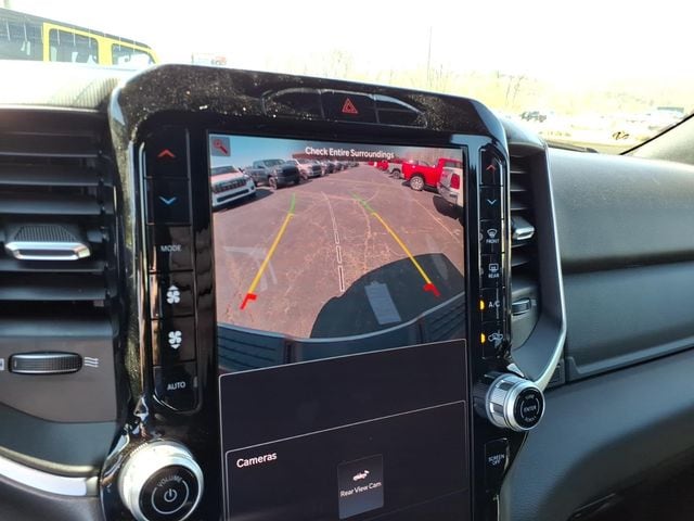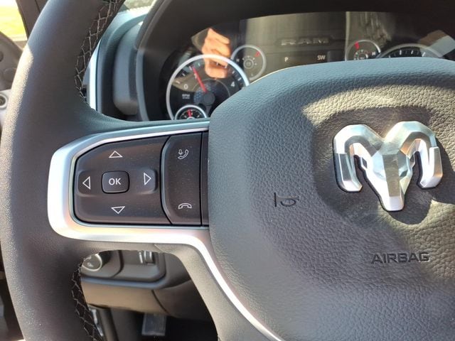 12" Touchscreen Display, 2 Way Rear Headrest Seat, 2nd Row in Floor Storage Bins, 4 Way Front Headrests, 4-Wheel Disc Brakes, 40/20/40 Split Bench Seat, 4G LTE Wi-Fi Hot Spot, 5th Wheel/Gooseneck Towing Prep Group, 6 Speakers, 9 Alpine Speakers with Subwoofer, ABS brakes, Air Conditioning, Air Conditioning ATC with Dual Zone Control, Alexa Built-in, Alloy wheels, AM/FM radio: SiriusXM, Anti-Spin Differential Rear Axle, Apple CarPlay, Apple CarPlay/Android Auto, Auto Power-Folding Mirrors, Auto-Dimming Rear-View Mirror, Big Horn Level 1 Plus Equipment Group, Black Exterior Mirrors, Black Exterior Truck Badging, Black Interior Accents, Black Wheel Center Hub, Body Color Grille-Surround, Brake assist, Bumpers: chrome, Center Hub, Clearance Lamps, Cloth 40/20/40 Bench Seat, Compass, Connected Travel and Traffic Services, Connectivity - US/Canada, Dash Pass Thru Wire Circuits, Delay-off headlights, Disassociated Touchscreen Display, Driver door bin, Dual front impact airbags, Dual front side impact airbags, Dual Glove Boxes, Electronic Stability Control, Emergency Vehicle Alert System (EVAS), Exterior Mirrors Courtesy Lamps, Exterior Mirrors with Heating Element, Exterior Mirrors with Supplemental Signals, Foam Bottle Insert (door Trim Panel), Folding Flat Load Floor Storage, Footwell Courtesy Lamp, For Details, Visit DriveUconnect.com, For More Info, Call 800-643-2112, Forward and Reverse Utility Lights, Front anti-roll bar, Front Armrest with Cupholders, Front Center Armrest w/Storage, Front Center Seat Cushion Storage, Front fog lights, Front License Plate Bracket, Front reading lights, Front Seat Back Map Pockets, Fully automatic headlights, Global Telematics Box Module, Gloss Black Nostrils/Mic Black Grille, Glove Box Lamp, Google Android Auto, GPS Antenna Input, GPS Navigation, HD Radio, Heated door mirrors, Heated Front Seats, Heated Seats and Wheel Group, Heated Steering Wheel, Illuminated entry, Instrument Panel Mounted Auxiliary Switches, Integrated Voice Command with Bluetooth, LED Bed Lighting, Locking Lower Glove Box, Low tire pressure warning, Luxury Steering Wheel, Manual Adjust 4-Way Driver Seat, Manual Adjust 4-Way Front Passenger Seat, Manufacturer's Statement of Origin, Mirror Running Lights, MOPAR Deployable Bed Step, MOPAR Front and Rear Rubber Floor Mats, MOPAR Spray in Bedliner, Night Edition, Occupant sensing airbag, Off-Road Info Pages, Outside temperature display, Overhead airbag, Overhead console, Painted Front Bumper, Painted Rear Bumper, Panic alarm, ParkView Rear Back-Up Camera, Passenger door bin, Passenger vanity mirror, Power 2-Way Driver Price includes: $1000 - 2026 Great Lakes BC Bonus Cash $1000 - 2026 National