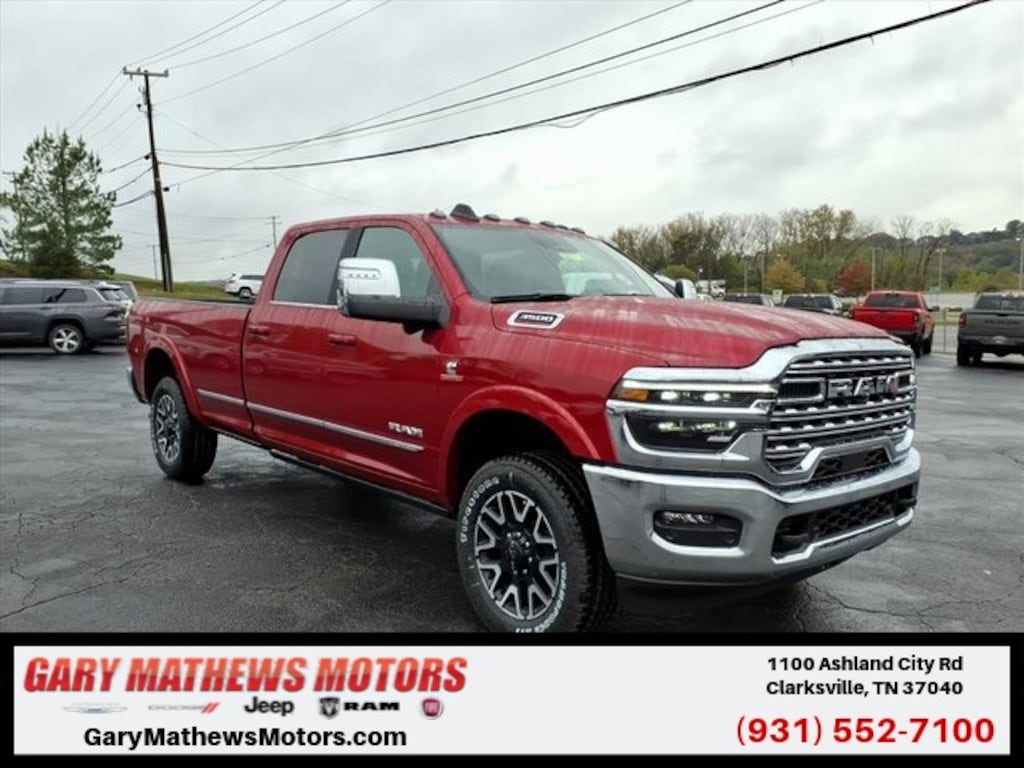 Molten Red Pearlcoat 2026 Ram 3500 Limited 4WD 8-Speed Automatic 6.7L I6 17 Speakers, 4-Wheel Disc Brakes, 50 Gallon Fuel Tank, 5th Wheel/Gooseneck Towing Prep Group, ABS brakes, Active Lane Management System, Adaptive Steering System, Adjustable pedals, Air Conditioning, Alloy wheels, AM/FM radio: SiriusXM with 360L, Apple CarPlay/Android Auto, Audio memory, Auto High-beam Headlights, Auto Level Rear Air Suspension, Auto-dimming door mirrors, Auto-dimming Rear-View mirror, Automatic temperature control, Black Wheel Center Hub, Bodyside moldings, Brake assist, Bright Front Bumper, Bright Rear Bumper, Bumpers: body-color, Chrome Bumper Package, Clearance Lamps, Compass, CTR Stop Lamp w/Cargo View Camera, Dash Pass Thru Wire Circuits, Delay-off headlights, Digital Rearview Mirror, Driver door bin, Driver vanity mirror, Drowsy Driver Detection, Dual front impact airbags, Dual front side impact airbags, Electronic Stability Control, Engine Block Heater, Front anti-roll bar, Front Bucket Seats, Front Center Armrest w/Storage, Front dual zone A/C, Front fog lights, Front reading lights, Fully automatic headlights, Garage door transmitter, Genuine wood console insert, Genuine wood dashboard insert, Genuine wood door panel insert, harman/kardon® Speakers, Heated door mirrors, Heated front seats, Heated rear seats, Heated steering wheel, I/P Mounted Auxiliary Switches, Illuminated entry, Leather steering wheel, LED Bed Lighting, Limited Level 1 Equipment Group, Low tire pressure warning, Manufacturer's Statement of Origin, Memory seat, MOPAR Spray In Bedliner, Navigation System, Occupant sensing airbag, Outside temperature display, Overhead airbag, Overhead console, Panic alarm, ParkView Rear Back-Up Camera, Passenger door bin, Passenger vanity mirror, Pedal memory, Power Deployable Running Boards, Power door mirrors, Power driver seat, Power passenger seat, Power steering, Power Sunroof, Power windows, Quick Order Package 24M Limited, Radio data system, Radio: Uconnect 5 Nav w/14.4" Display, Rain sensing wipers, Rear reading lights, Rear seat center armrest, Rear step bumper, Rear window defroster, Remote keyless entry, Security system, Speed control, Split folding rear seat, Steering wheel mounted audio controls, Surround View Camera System, Tachometer, Tilt steering wheel, Tow-Mode Camera (Wired), Tow-Mode Digital Rear View Mirror Package, Traction control, Traffic Sign Recognition, Trailer Reverse Guidance, Trailer Tire Pressure Monitoring System, Trip computer, Turn signal indicator mirrors, Ultra Premium Leather Seats, Variably intermittent wipers, Ventilated front seats, Voltmeter, Wheels: 20" x 8.0" Diam Cut Alum w/Blk Pt Pock. Price includes: $1000 - 2026 National Bonus Cash