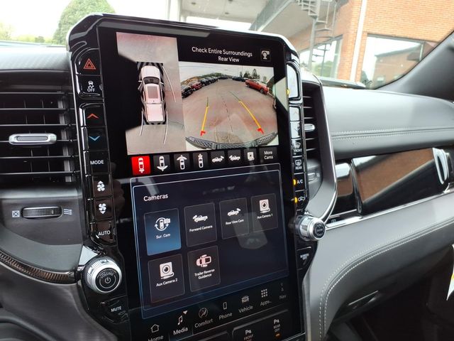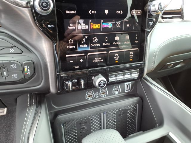 10 Speakers, 12-Way/1-Way Trailer Connector, 14.4" Touchscreen Display, 240 Amp Alternator, 3.92 Rear Axle Ratio, 4-Wheel Disc Brakes, 4G LTE Wi-Fi Hot Spot, ABS brakes, Adaptive suspension, Adjustable pedals, Air Conditioning, Alloy wheels, AM/FM radio, Apple CarPlay/Android Auto, Auto High-beam Headlights, Auto Power-Folding Mirrors, Auto-dimming door mirrors, Auto-Dimming Exterior Driver Mirror, Auto-Dimming Exterior Passenger Mirror, Auto-dimming Rear-View mirror, Automatic temperature control, Black Exterior Mirrors, Black Power-Fold Trailer Tow Mirrors, Brake assist, Compass, Connected Travel and Traffic Services, Connectivity - US/Canada, Delay-off headlights, Disassociated Touchscreen Display, Dome Dual LED Reading Lamp, Driver door bin, Driver Power Seat Back Massage, Driver Seat Memory, Driver vanity mirror, Driver/Passenger Wrapped Assist Handles, Drowsy Driver Detection, Dual front impact airbags, Dual front side impact airbags, Dual Wireless Charging Pad, Dual-Pane Panoramic Sunroof, Electronic Stability Control, Evasive Steer Assist, Exterior Mirrors Courtesy Lamps, Exterior Mirrors with Heating Element, Exterior Mirrors with Memory, Exterior Mirrors with Supplemental Signals, Exterior Parking Camera Rear, Flareside Box, Forward and Reverse Utility Lights, Front anti-roll bar, Front Bucket Seats, Front Center Armrest w/Storage, Front dual zone A/C, Front fog lights, Front Passenger Interactive Display, Front Passenger Power Seat Back Massage, Front reading lights, Front wheel independent suspension, Full Length Premium Upgraded Floor Console, Fully automatic headlights, Garage door transmitter, GPS Navigation, Hands-Free Active Driving Assist System, Harman/Kardon 19 Speaker Premium Sound, HD Radio, Heads-Up Display, Heated door mirrors, Heated front seats, Heated Second Row Seats, Heated steering wheel, Illuminated entry, Integrated Center Stack Radio, Integrated Voice Command with Bluetooth, Intersection Collision Assist System, Leather Shift Knob, Leather steering wheel, Leather Trimmed Bucket Seats, Leather/Carbon Flat-Bottom Steering Wheel, LED CHMSL Lamp, Low tire pressure warning, Luxury Front Door Trim Panel, Manufacturer's Statement of Origin, Mirror Clearance/Running Lights, Navigation System, Occupant sensing airbag, Outside temperature display, Overhead airbag, Overhead console, Panic alarm, Passenger door bin, Passenger vanity mirror, Power Adjustable Pedals with Memory, Power door mirrors, Power driver seat, Power passenger seat, Power steering, Power Tailgate, Power Telescoping Mirrors, Power windows, Power-Adjustable Convex Aux Mirrors, Premium Wrapped Instrument Panel Bezel, Quick Order Package 22Y RHO, Radio