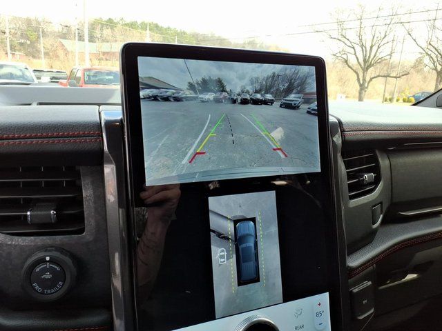 12 Speakers, 15.5" LCD Capacitive Touchscreen, 1st & 2nd Row Floor Mats w/Logo, 26mm Engine Radiator, 3.31 Axle Ratio, 3.73 Axle Ratio, 360-Degree Camera w/Split View, 360-Degree Camera w/Trailer Reverse Guidance, 3rd row seats: split-bench, 4-Wheel Disc Brakes, ABS brakes, Adjustable pedals, Air Conditioning, Alloy wheels, AM/FM radio: SiriusXM with 360L, Auto High-beam Headlights, Auto-dimming door mirrors, Auto-dimming Rear-View mirror, Automatic temperature control, Black Headlamp and Fog Lamp Bezels, Black Rear Bumper, Black Roof Rack Side Rails, Body Color Door Handles, Brake assist, Bumpers: body-color, Compass, Connected Navigation, Delay-off headlights, Driver door bin, Driver vanity mirror, Dual front impact airbags, Dual front side impact airbags, Ebony Black Bar and Mesh Grille, Ebony Black Power Deployable Running Boards, Ebony Black Tailgate Applique, Electronic Stability Control, Emergency communication system: SYNC 4 911 Assist, Equipment Group 303A Stealth Package, Exterior Parking Camera Rear, Four wheel independent suspension, Front anti-roll bar, Front Bucket Seats, Front Center Armrest, Front dual zone A/C, Front fog lights, Front reading lights, Fully automatic headlights, Garage door transmitter, Heated & Ventilated Leather Front Captain's Chairs, Heated door mirrors, Heated front seats, Heated rear seats, Heated steering wheel, Heated/Ventilated Lthr Front Captain's Chairs (A), Heavy-Duty Trailer Tow Package, Illuminated entry, Instrument Panel Cluster, Integrated Trailer Brake Controller, Leather steering wheel, LED Taillamp w/Black Bezels, Low tire pressure warning, Memory seat, Navigation system: Connected Navigation, Occupant sensing airbag, Outside temperature display, Overhead airbag, Overhead console, Panic alarm, Passenger door bin, Passenger vanity mirror, Pedal memory, Power door mirrors, Power driver seat, Power Liftgate, Power moonroof, Power passenger seat, Power steering, Power windows, Power-Folding Sideview Mirrors w/Autofold, Pro Trailer Backup Assist, Radio data system, Radio: B&O Sound System by Bang & Olufsen, Rain sensing wipers, Rear air conditioning, Rear anti-roll bar, Rear reading lights, Rear window defroster, Rear window wiper, Reclining 3rd row seat, Remote keyless entry, Reverse Brake Assist, Security system, SiriusXM w/360L, Speed control, Speed-sensing steering, Speed-Sensitive Wipers, Split folding rear seat, Spoiler, Sport Tuned Suspension, Sport-Tuned Suspension, Stealth Edition Package, Steering wheel memory, Steering wheel mounted audio controls, SYNC 4 w/Enhanced Voice Recognit