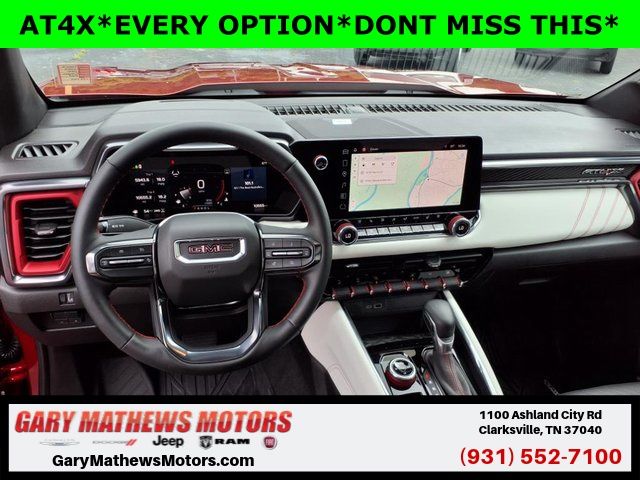 Elevate your driving experience with the unparalleled comfort and technology of the Canyon AT4X. The spacious cabin features premium leather-appointed seating, wireless charging, and a state-of-the-art 11.3" diagonal premium GMC Infotainment System with built-in navigation. Safety is also a top priority, with features like Adaptive Cruise Control, Rear Cross Traffic Braking, and the innovative Canyon Pro Safety suite.