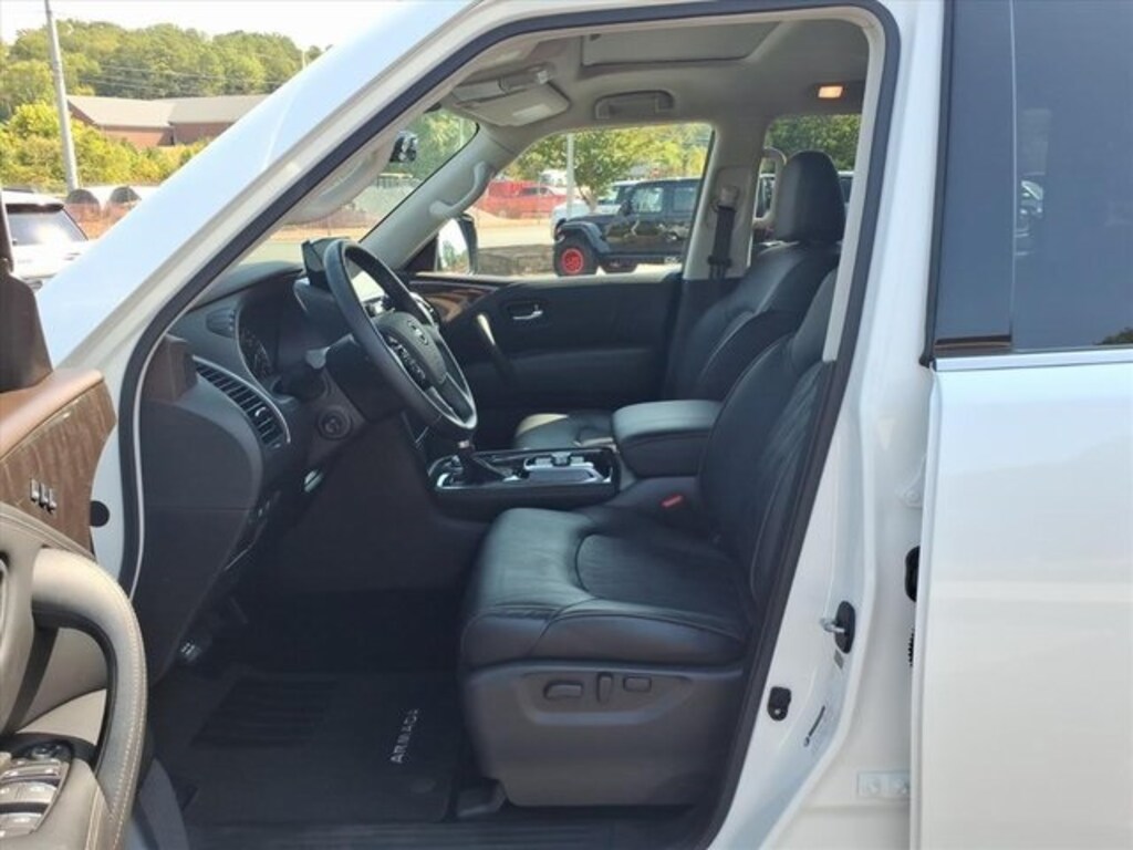 Bluetooth, Navigation System/ GPS, iPod Adapter, USB Port, Heated Seats, Cooled Seats, Remote Start, Rear View Camera/ Backup Camera, Sunroof/ Moonroof, Satellite Radio/ XM, Blind Spot Monitor, Push Button Start, Leather Seats, 3rd Row Seats, Parking Sensors, Collision Intervention, Radar Cruise Control/ Adaptive Cruise Control, Tow Package, 4WD, AWD, All Wheel Drive, All Maintenance Up To Date, Alloy Wheels, Appearance Package, Audio Package, Backup Camera, Moonroof, Navigation System, Sunroof/Moonroof, Armada Platinum, 4WD, Aspen White, 2nd Row Captain's Chairs, 2nd Row Center Console w/Padded Armrest, Captain's Chairs Package, Memory seat, Navigation System, Power driver seat, Power steering, Rain sensing wipers, Ventilated front seats, Wheels: 22" x 8J Machine-Faced w/Tinted Clear Coat, 13 Speakers, 2.937 Axle Ratio, 3rd row seats: split-bench, 4-Wheel Disc Brakes, ABS brakes, Air Conditioning, Alloy wheels, AM/FM radio: SiriusXM, Anti-whiplash front head restraints, Auto High-beam Headlights, Auto tilt-away steering wheel, Auto-dimming door mirrors, Auto-dimming Rear-View mirror, Auto-leveling suspension, Automatic temperature control, Brake assist, Bumpers: body-color, Climate-Controlled Front Bucket Seats, Delay-off headlights, Driver door bin, Driver vanity mirror, Dual front impact airbags, Dual front side impact airbags, Electronic Stability Control, Emergency communication system: NissanConnect Services, Exterior Parking Camera Rear, Four wheel independent suspension, Front anti-roll bar, Front Bucket Seats, Front Center Armrest, Front dual zone A/C, Front fog lights, Front reading lights, Fully automatic headlights, Garage door transmitter: HomeLink, Heated door mirrors, Heated front seats, Heated rear seats, Heated steering wheel, HVAC memory, Illuminated entry, Knee airbag, Leather Shift Knob, Leather steering wheel, Low tire pressure warning, Occupant sensing airbag, Outside temperature display, Overhead airbag, Overhead console, Panic alarm, Passenger door bin, Passenger vanity mirror, Power door mirrors, Power Liftgate, Power moonroof, Power passenger seat, Power windows, Quilted Leather Seat Trim, Radio: NissanConnect w/SiriusXM, Rear air conditioning, Rear anti-roll bar, Rear reading lights, Rear seat center armrest, Rear window defroster, Rear window wiper, Reclining 3rd row seat, Remote keyless entry, Security system, Speed control, Speed-sensing steering, Speed-Sensitive Wipers, Split folding rear seat, Spoiler, Steering wheel memory, Steering wheel mounted audio controls, Tachometer, Telescoping steering wheel, Tilt steering wheel, Traction control, Trip computer, Turn signal indicator mirrors, Variably intermittent wipers, Voltmeter, Armada Platinum, 4WD, Aspen White, 2nd Row Captain's Chairs, 2nd Row Center Console w/Padded Armrest, Captain's Chairs Package, Memory seat, Navigation System, Power driver seat, Power steering, Rain sensing wipers, Ventilated front seats, Wheels: 22" x 8J Machine-Faced w/Tinted Clear Coat. CARFAX One-Owner. Clean CARFAX. 4WD 7-Speed Automatic 5.6L V8 DOHC 32V LEV3-ULEV125 400hp