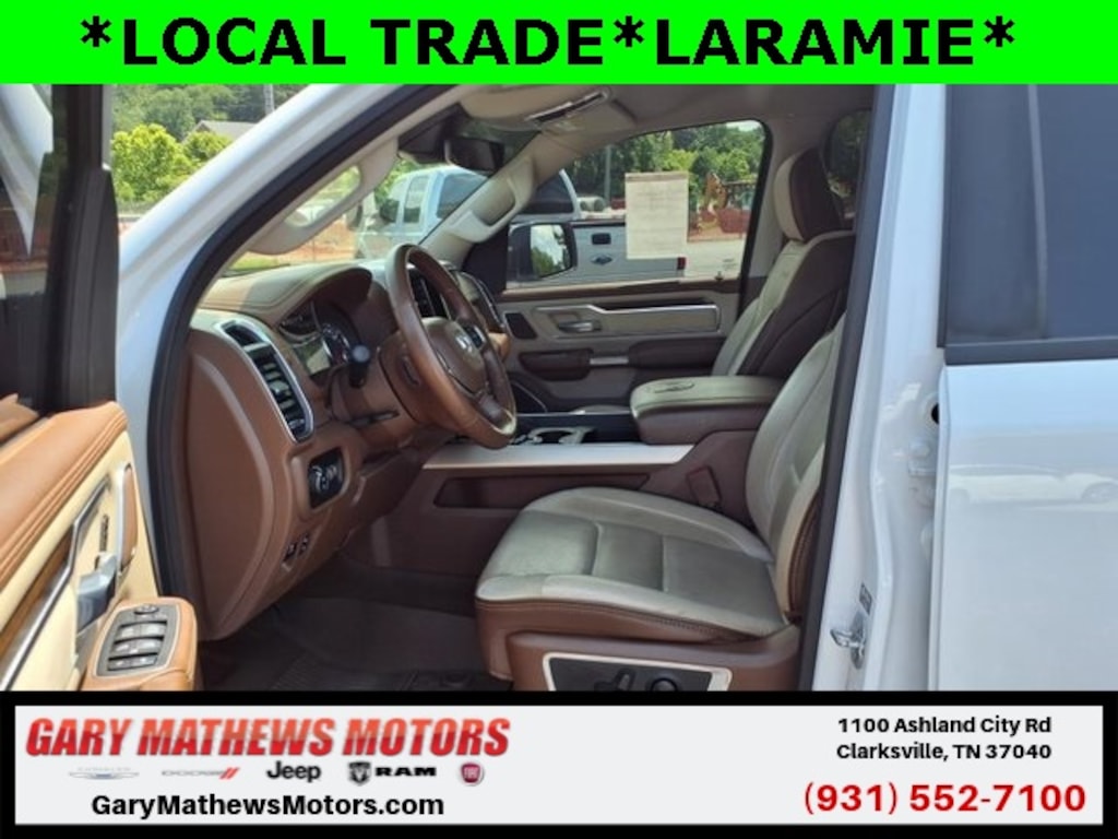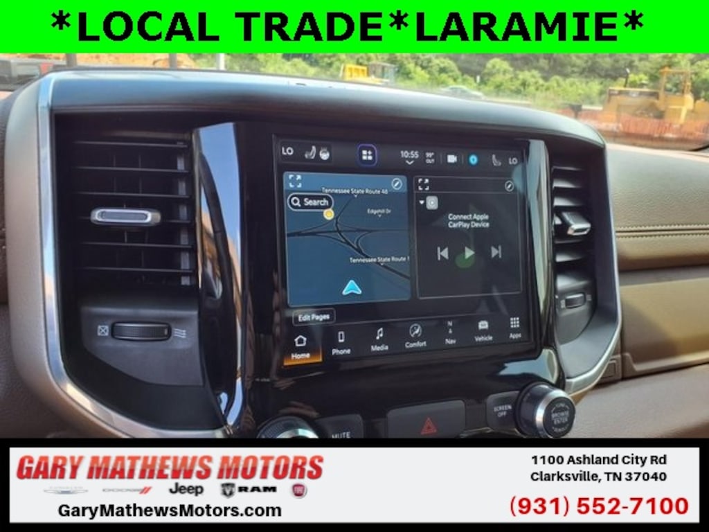 Bluetooth, Navigation System/ GPS, iPod Adapter, USB Port, Heated Seats, Cooled Seats, Remote Start, Rear View Camera/ Backup Camera, Push Button Start, Leather Seats, Parking Sensors, Tow Package, 4WD, Local Trade, UConnect, Apple Car Play, Alloy Wheels, Aluminum Wheels, Appearance Package, Audio Package, Backup Camera, Navigation System, Popular Equipment Package, Preferred Equipment Package, Premium Sound Package, Premium Wheels, Trailer Package, #1 Seat Foam Cushion, 10 Speakers, 26 Gal. Fuel Tank (Replace 23 Gal.) (DISC), 2nd Row In Floor Storage Bins, 3 Rear Seat Head Restraints, 3.21 Rear Axle Ratio, 4 Way Front Headrests, 4-Corner Air Suspension, 4-Wheel Disc Brakes, 48V Belt Starter Generator, 4G LTE Wi-Fi Hot Spot, 8.4" Touchscreen Display, ABS brakes, Adjustable pedals, Air Conditioning, All R1 High Radios, All Radio Equipped Vehicles, Alloy wheels, AM/FM radio: SiriusXM, Apple CarPlay, Apple CarPlay/Android Auto, Audio memory, Auto High Beam Headlamp Control, Auto-dimming door mirrors, Auto-Dimming Exterior Driver Mirror, Auto-dimming Rear-View mirror, Automatic temperature control, Bed Utility Group, Brake assist, Bumpers: chrome, Chrome Exterior Mirrors, Compass, Connected Travel & Traffic Services, Connectivity - US/Canada, Convex Wide-Angle Mirror Insert, Delay-off headlights, Disassociated Touchscreen Display, Driver door bin, Driver Seat Memory, Driver vanity mirror, Dual front impact airbags, Dual front side impact airbags, Electronic Stability Control, Exterior Mirrors Courtesy Lamps, Exterior Mirrors w/Heating Element, Exterior Mirrors w/Memory, Exterior Mirrors w/Supplemental Signals, Foam Bottle Insert (Door Trim Panel), For Details, Visit DriveUconnect.com, For More Info, Call 800-643-2112, Front anti-roll bar, Front Center Armrest w/Storage, Front dual zone A/C, Front fog lights, Front reading lights, Front Seat Back Map Pockets, Front wheel independent suspension, Fully automatic headlights, Garage door transmitter, Global Telematics Box Module (TBM), Google Android Auto, GPS Antenna Input, GPS Navigation, harman/kardon 19 Speaker Premium Sound, HD Radio, Heated door mirrors, Heated Front Seats, Heated front seats, Heated Second Row Seats, Heated Steering Wheel, Heated steering wheel, Illuminated entry, Integrated Center Stack Radio, Integrated Voice Command w/Bluetooth, Laramie Level B Equipment Group (DISC), Leather steering wheel, Leather Trim 40/20/40 Bench Seat, Low tire pressure warning, Memory seat, MOPAR 4 Adjustable Cargo Tie-Down Hooks, MOPAR Front & Rear Rubber Floor Mats, MOPAR Spray In Bedliner, Occupant sensing airbag, Outside temperature display, Overhead airbag, Overhead console, Panic alarm, ParkSense Front/Rear Park Assist w/Stop, ParkView Rear Back-Up Camera, Passenger door bin, Passenger vanity mirror, Pedal memory, Pick-Up Box Lighting, Power 2-Way Driver Lumbar Adjust, Power 2-Way Passenger Lumbar Adjust, Power 8-Way Driver & Passenger Seats, Power door mirrors, Power driver seat, Power passenger seat, Power Running Boards, Power steering, Power windows, Power-Folding Mirrors, Quick Order Package 27H Laramie, Radio data system, Radio: Uconnect 5 Nav w/8.4" Display, Radio: Uconnect 5 W w/8.4" Display, Rain Sensitive Windshield Wipers, Rear 60/40 Folding Seat, Rear 60/40 Folding Split Recline Seat, Rear anti-roll bar, Rear seat center armrest, Rear step bumper, Rear Underseat Compartment Storage (DISC), Rear Wheelhouse Liners, Rear window defroster, Remote keyless entry, Remote Tailgate Release, Security system, SiriusXM Radio Service, SiriusXM w/360L, Speed control, Split folding rear seat, Steering wheel mounted audio controls, Tachometer, Telescoping steering wheel, Tilt steering wheel, Traction control, Trailer Brake Control, Trailer Light Check, Trailer Reverse Steering Control, Trailer Tire Pressure Monitoring System, Trailer Tow Group, Trip computer, Turn signal indicator mirrors, USB Host Flip, Variably intermittent wipers, Ventilated Front Seats, Ventilated front seats, Vo