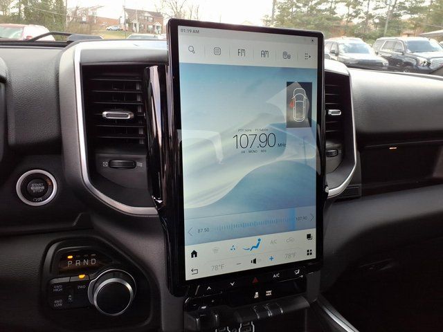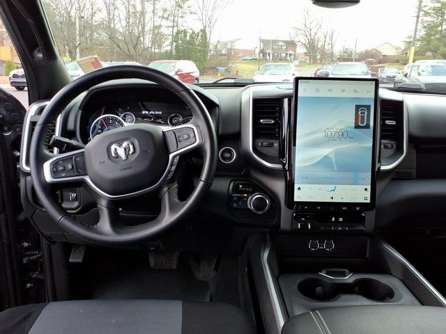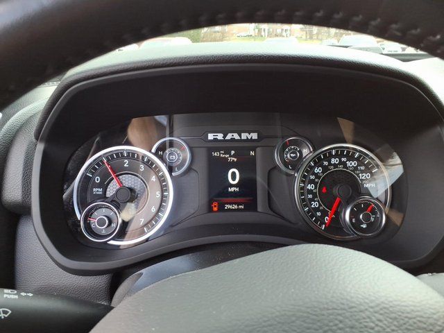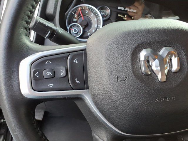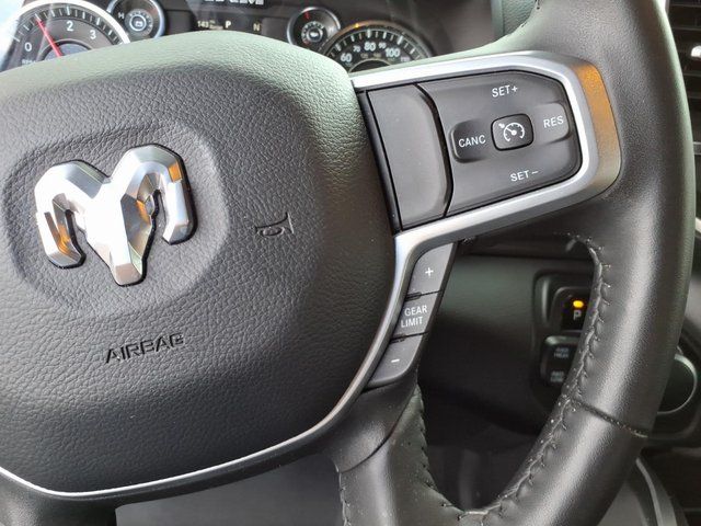 2 Way Rear Headrest Seat, 2nd Row In Floor Storage Bins, 3.73 Axle Ratio, 4 Way Front Headrests, 4-Wheel Disc Brakes, 40/20/40 Split Bench Seat, 4G LTE Wi-Fi Hot Spot, 6 Speakers, 8.4" Touchscreen Display, ABS brakes, Active Noise Control System, Air Conditioning, Apple CarPlay, Auto Power-Folding Mirrors, Bed Utility Group, Big Horn IP Badge, Black Exterior Mirrors, Bluetooth Handsfree Phone & Audio, Brake assist, Bumpers: chrome, Center Hub, Center Stack Storage Drawer, Chrome Flat Cab-Length Side Steps, Cloth 40/20/40 Bench Seat, Compass, Connectivity - US/Canada, Delay-off headlights, Driver door bin, Dual front impact airbags, Dual front side impact airbags, Dual Glove Boxes, Electronic Stability Control, Electronically Controlled Throttle, Emergency communication system: SiriusXM Guardian, Exterior Mirrors Courtesy Lamps, Exterior Mirrors w/Heating Element, Exterior Mirrors w/Supplemental Signals, Foam Bottle Insert (Door Trim Panel), Footwell Courtesy Lamp, For Details, Visit DriveUconnect.com, For More Info, Call 800-643-2112, Forward & Reverse Utility Lights, Front anti-roll bar, Front Armrest w/Cupholders, Front Center Armrest w/Storage, Front Center Seat Cushion Storage, Front Fog Lamps, Front reading lights, Front Seat Back Map Pockets, Fully automatic headlights, Global Telematics Box Module (TBM), Glove Box Lamp, Google Android Auto, GPS Antenna Input, Heated door mirrors, Heated Front Seats, Heated Seats & Wheel Group, Heated Steering Wheel, Illuminated entry, Integrated Center Stack Radio, Integrated Voice Command w/Bluetooth, Leather Wrapped Steering Wheel, LED Bed Lighting, Level 1 Equipment Group, Locking Lower Glove Box, Low tire pressure warning, Manual Adjust 4-Way Driver Seat, Manual Adjust 4-Way Front Passenger Seat, Manufacturer's Statement of Origin, Mirror Running Lights, MOPAR Deployable Bed Step, MOPAR Spray In Bedliner, Occupant sensing airbag, Outside temperature display, Overhead airbag, Overhead console, Panic alarm, ParkView Rear Back-Up Camera, Passenger door bin, Passenger vanity mirror, Power 2-Way Driver Lumbar Adjust, Power Adjust 8-Way Driver Seat, Power Adjust Mirrors, Power Adjustable Convex Aux Mirrors, Power door mirrors, Power Heated Fold Telescope Mirrors, Power steering, Power Telescoping Mirrors, Power windows, Premium Cloth 40/20/40 Bench Seat (DISC), Quick Order Package 2GZ Big Horn, Radio data system, Radio: Uconnect 3 w/5" Display, Radio: Uconnect 5 W w/8.4" Display, Rear 60/40 Folding Seat, Rear anti-roll bar, Rear Dome w/On/Off Switch Lamp, Rear Folding Seat, Rear seat center armrest, Rear step bumper, Remote keyless entry, Remote Start System, Remote USB Port - Cha